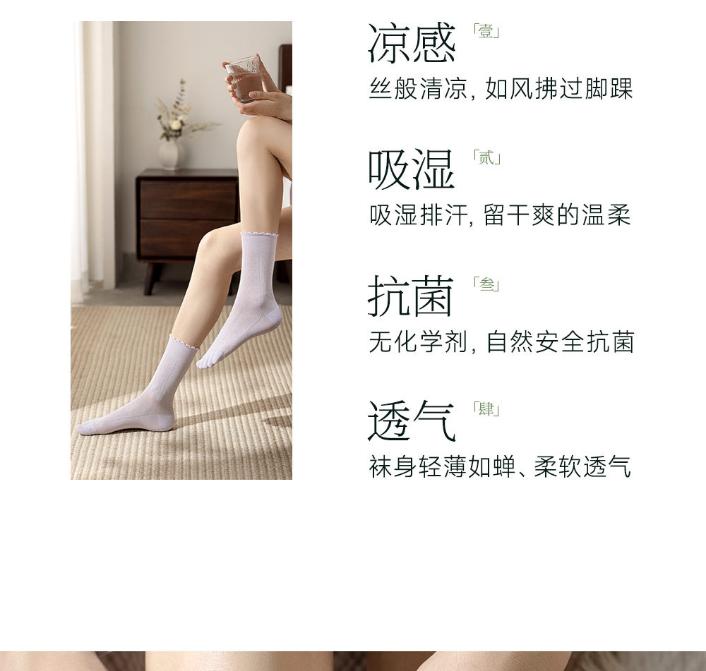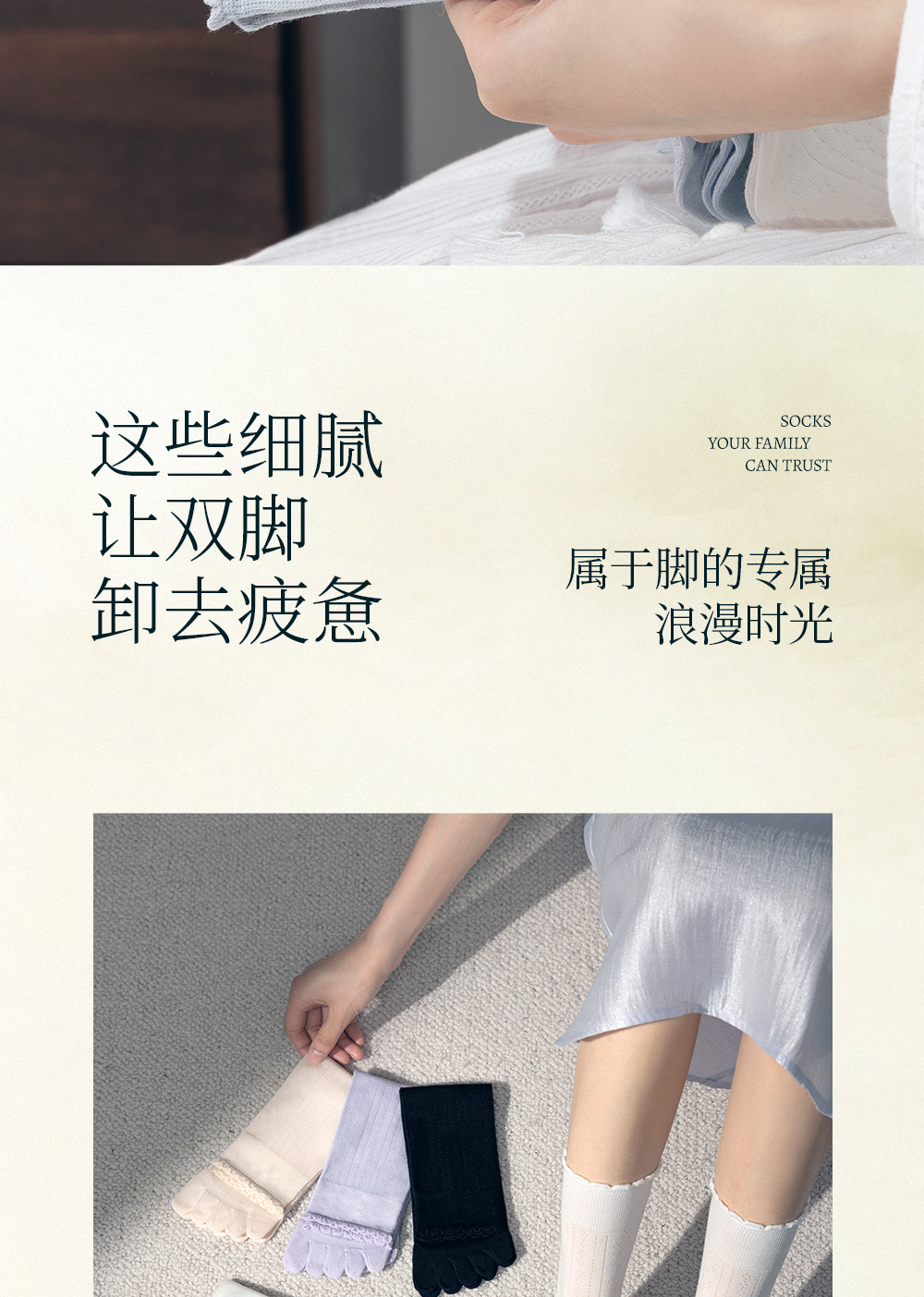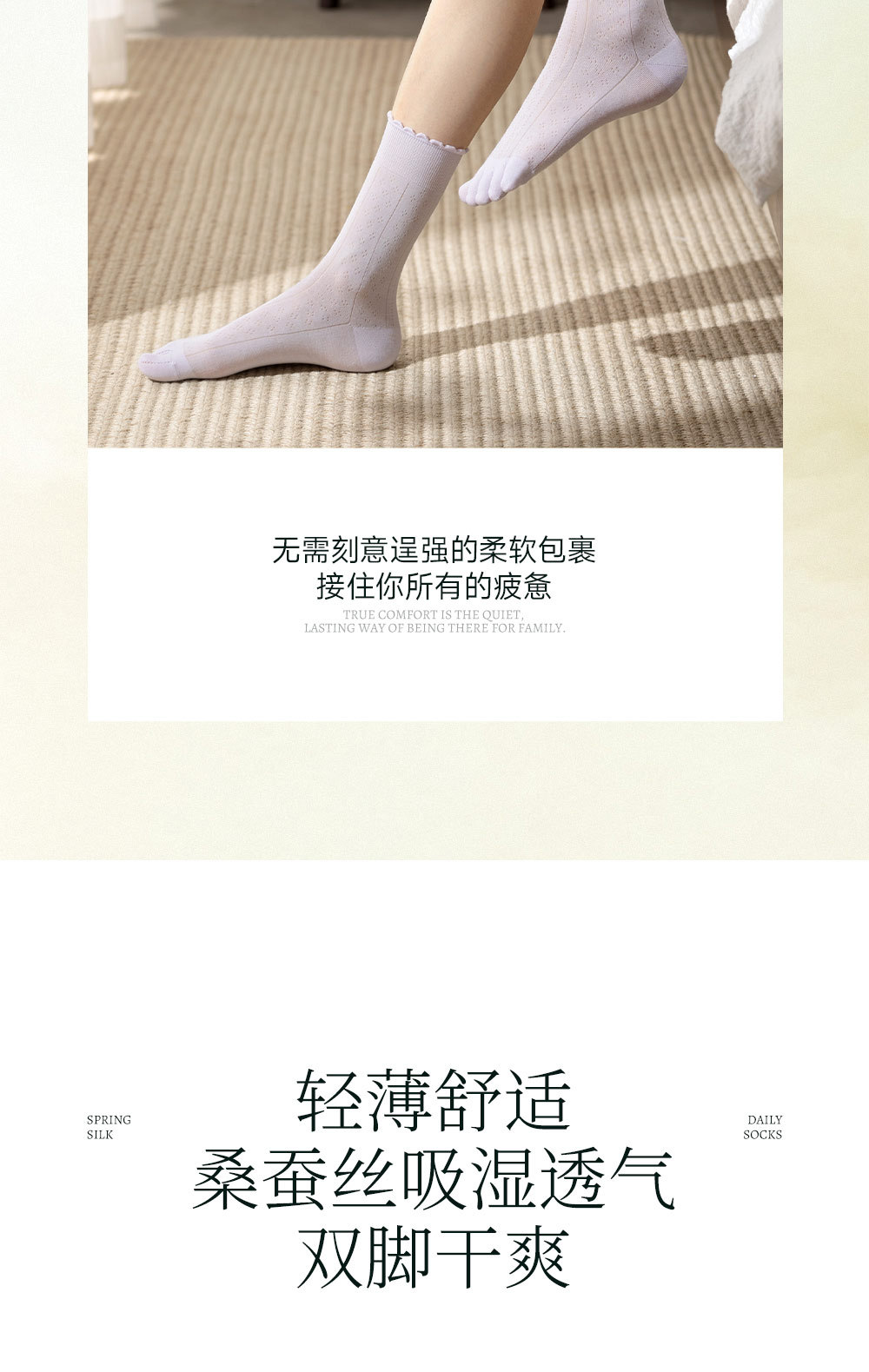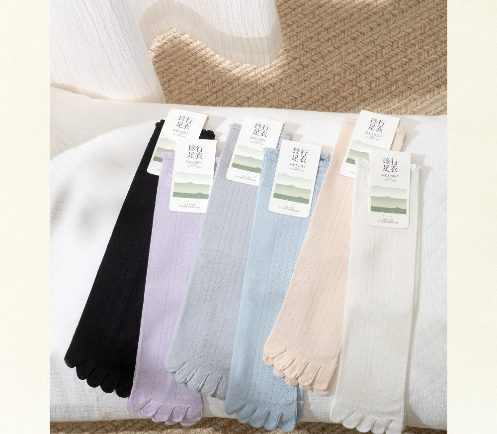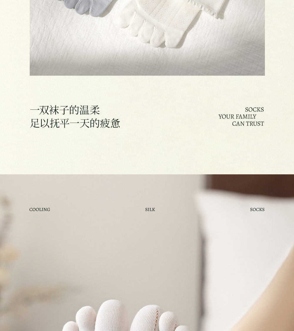 诸暨袜业桑蚕丝五指袜子女春夏薄款白色分趾袜无骨夏天中筒袜批发