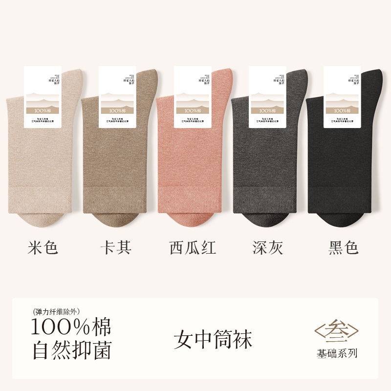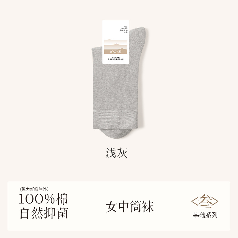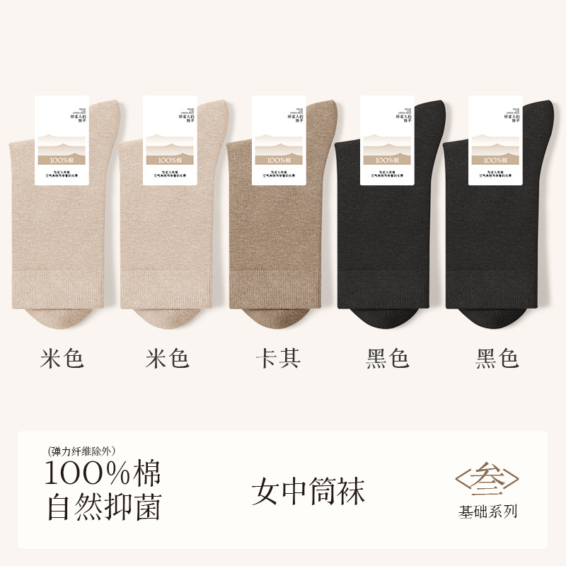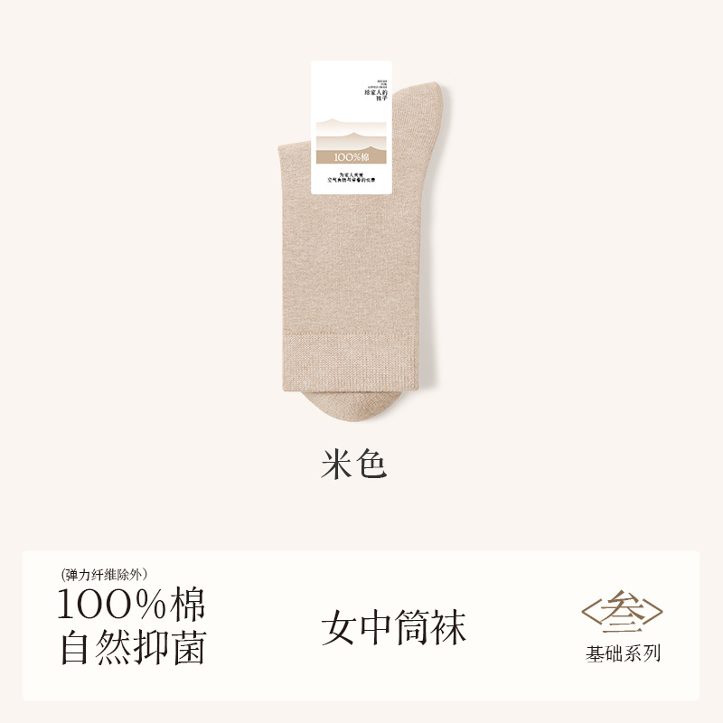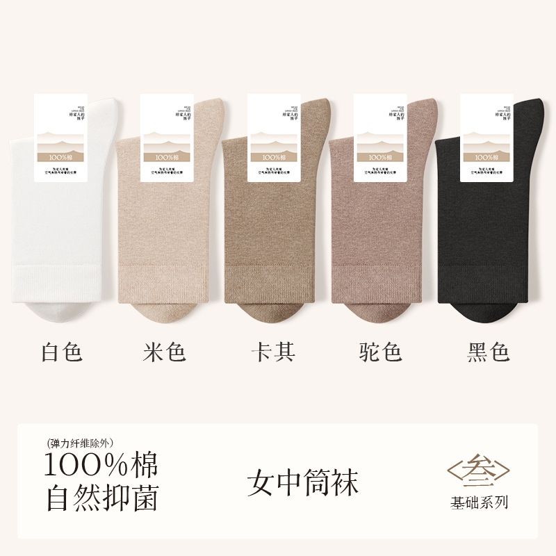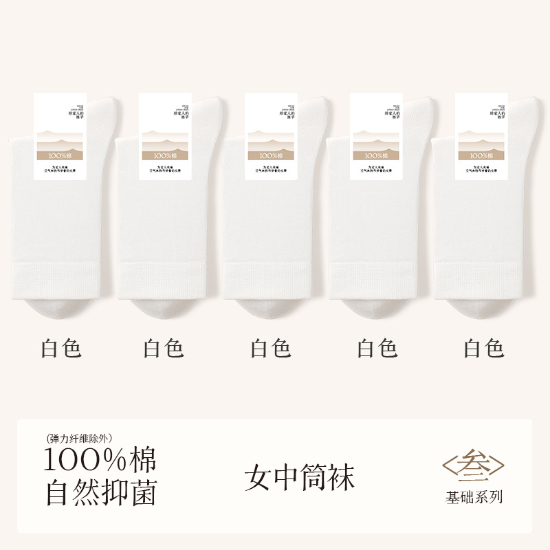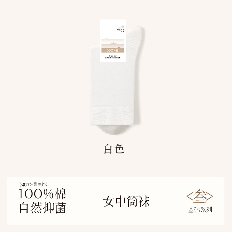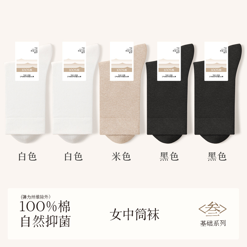 诸暨袜业100%棉袜子女夏季薄款中筒袜纯棉白色月子春秋季无骨女士