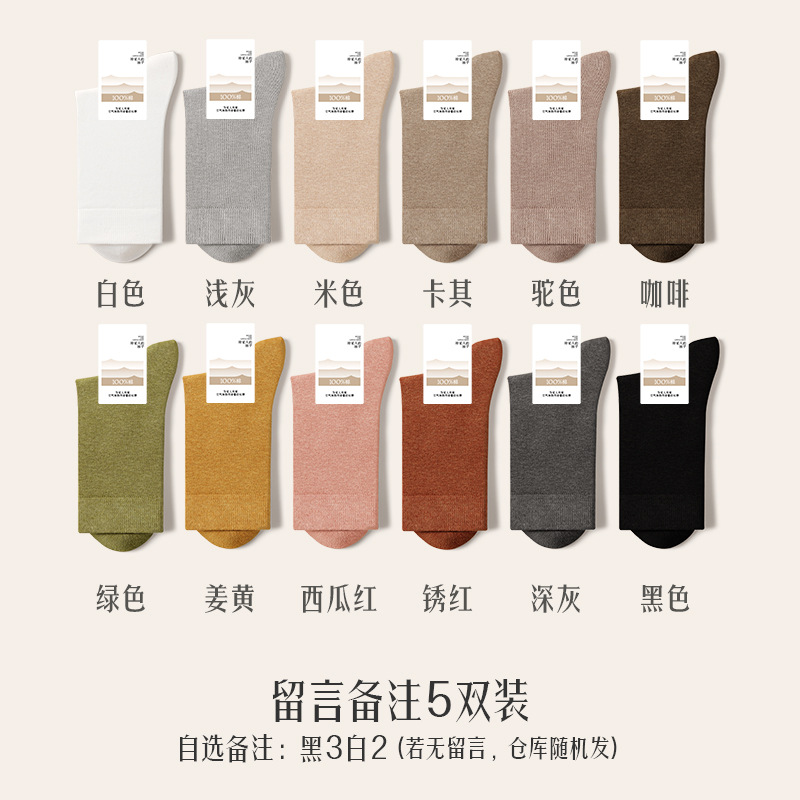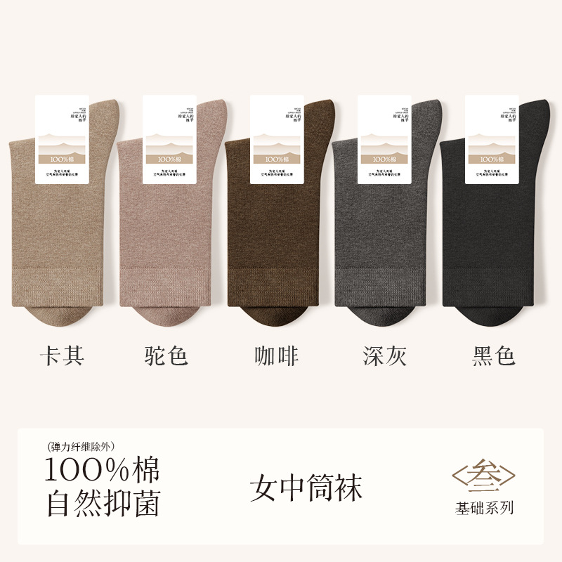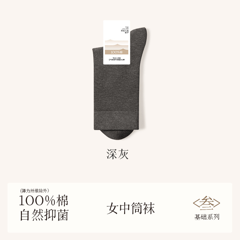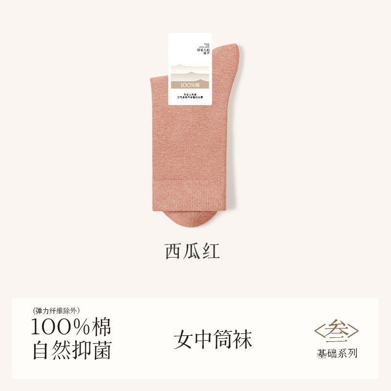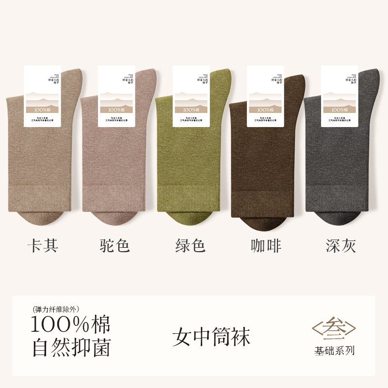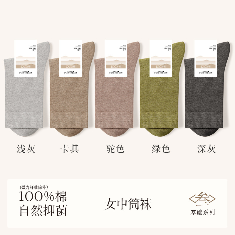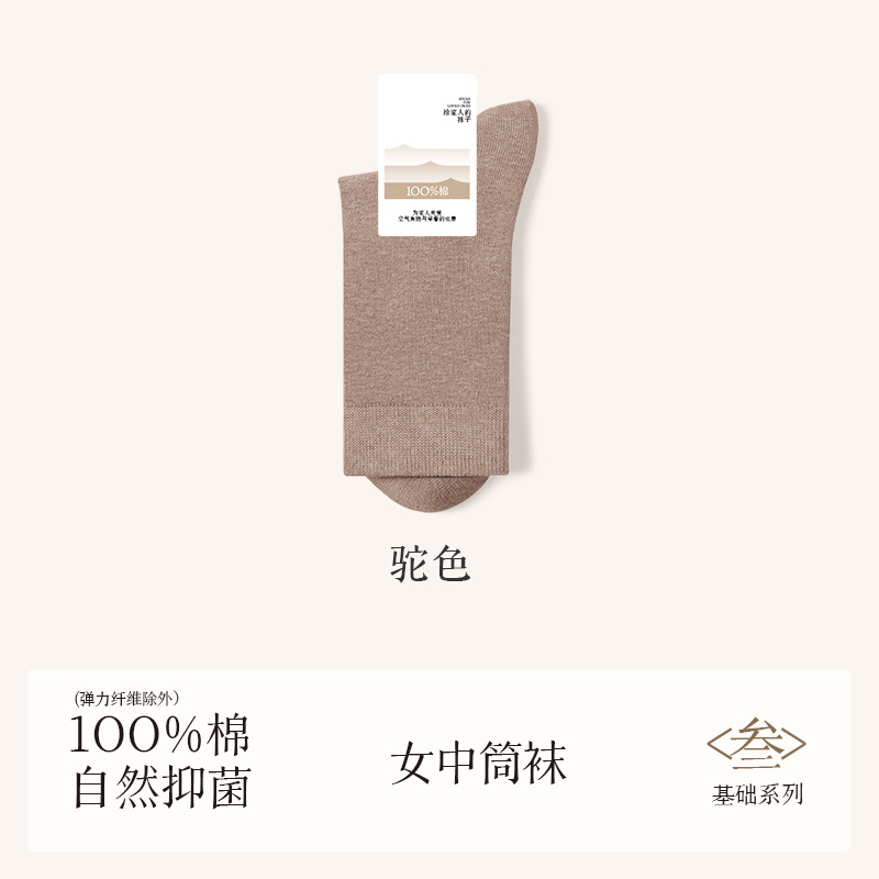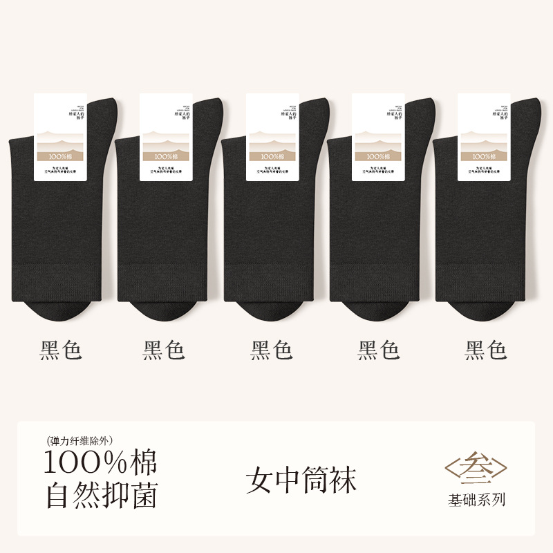 诸暨袜业100%棉袜子女夏季薄款中筒袜纯棉白色月子春秋季无骨女士