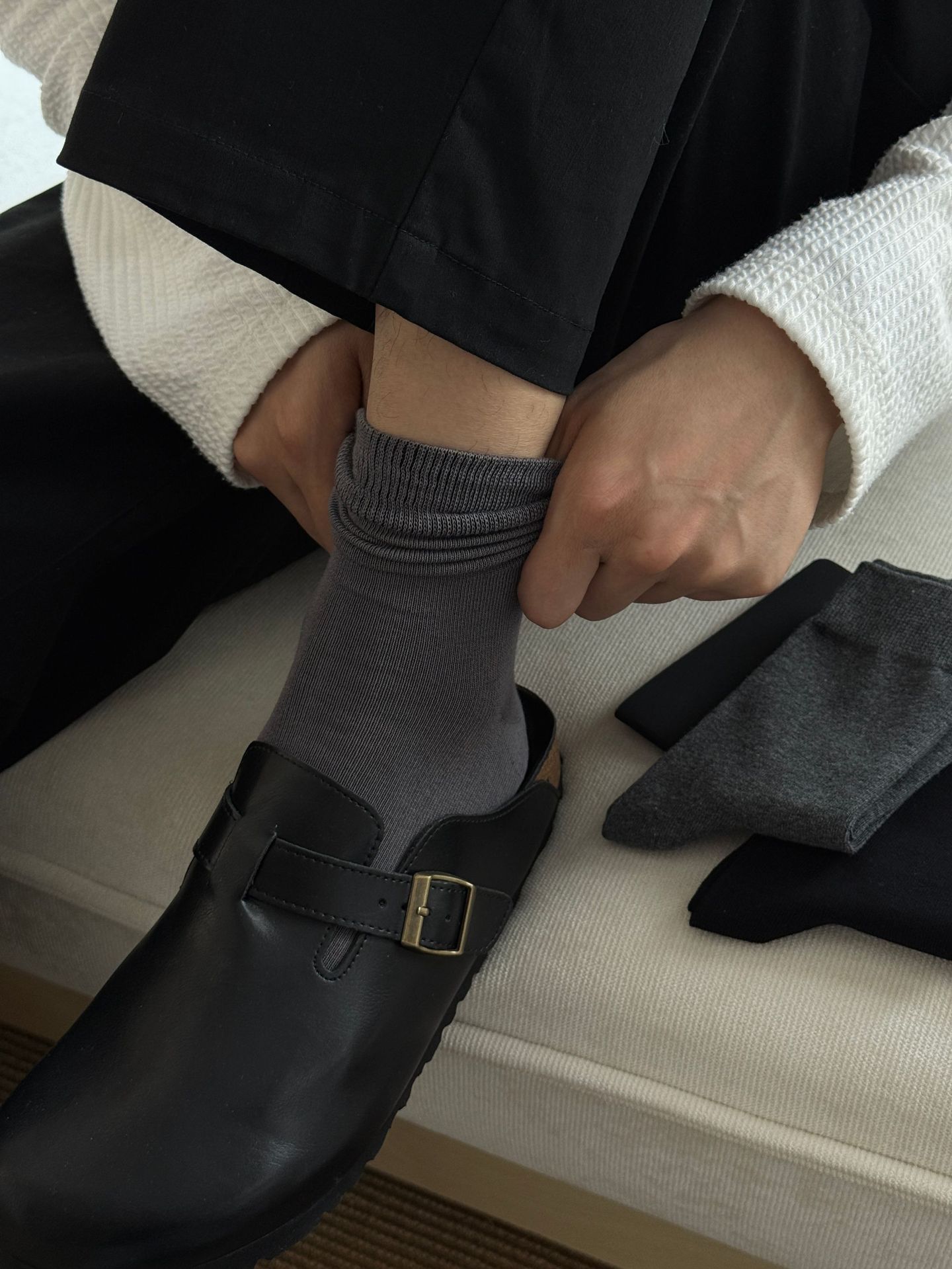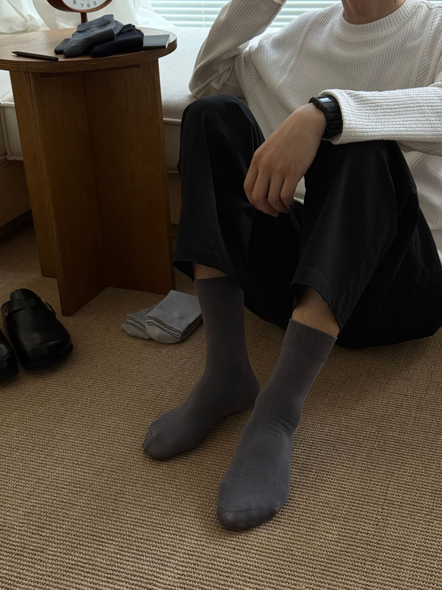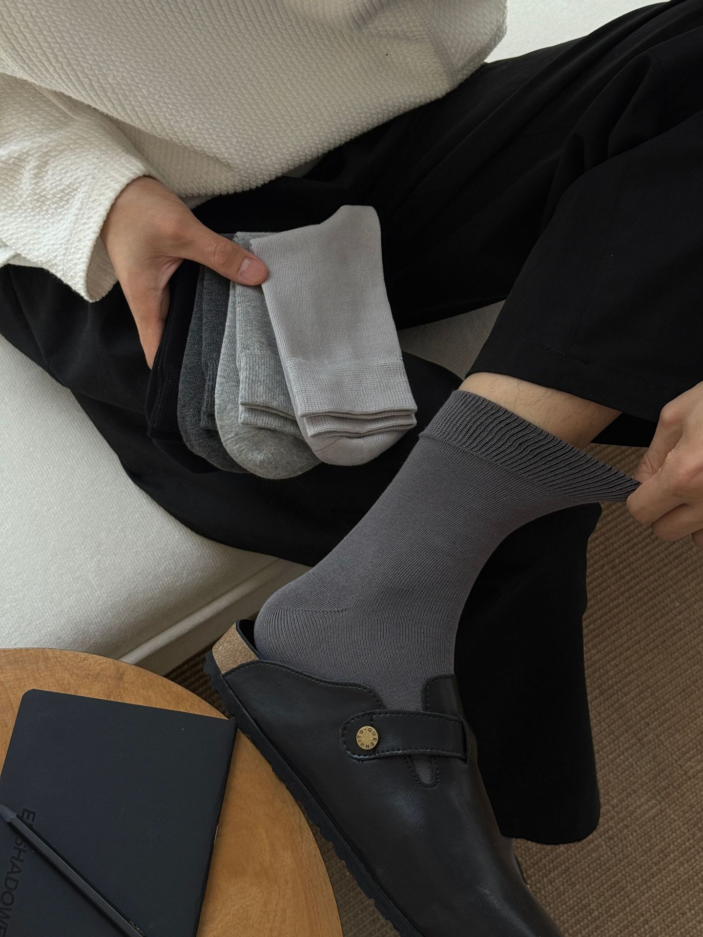 纯色男士袜子四季款新疆长绒棉无骨吸汗防臭商务灰色长袜中筒袜
