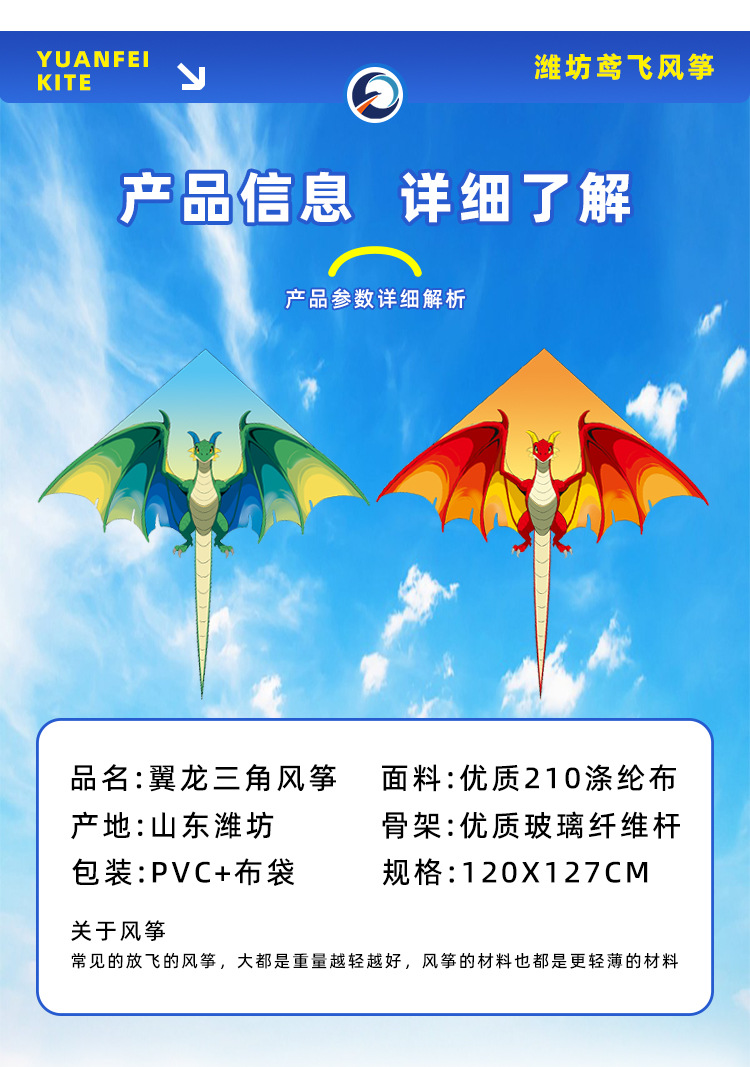 三角风筝成人风筝儿童风筝亚马逊折叠风筝环保材料户外玩具