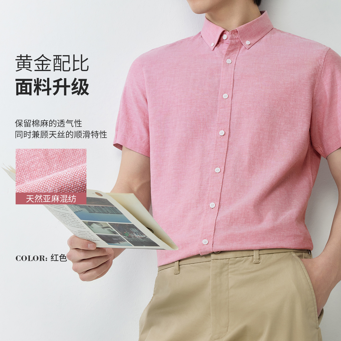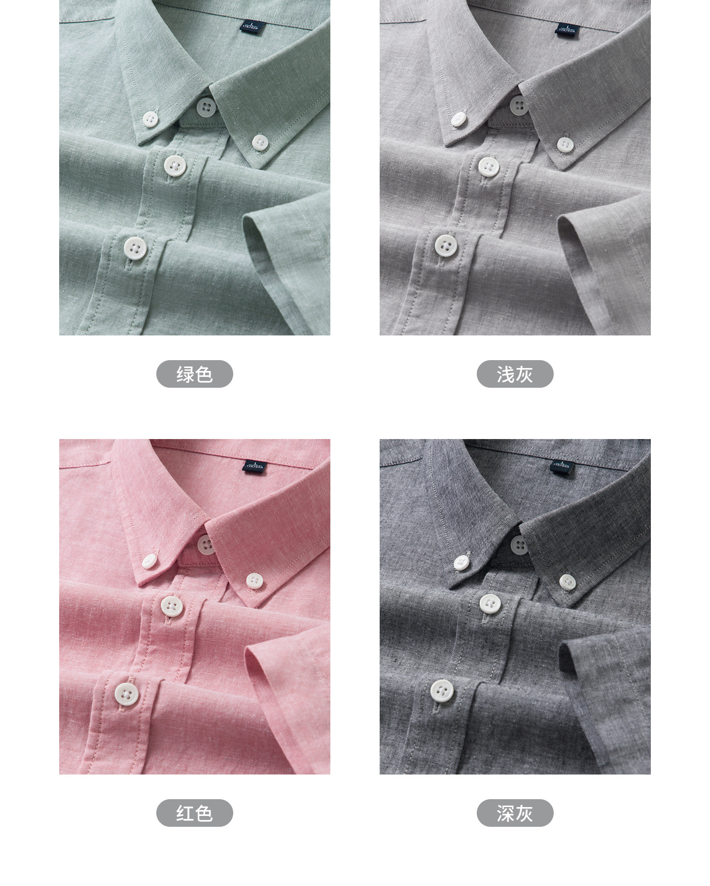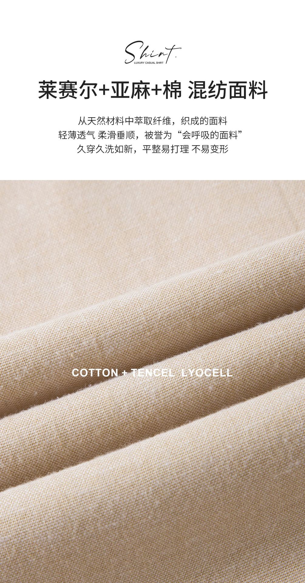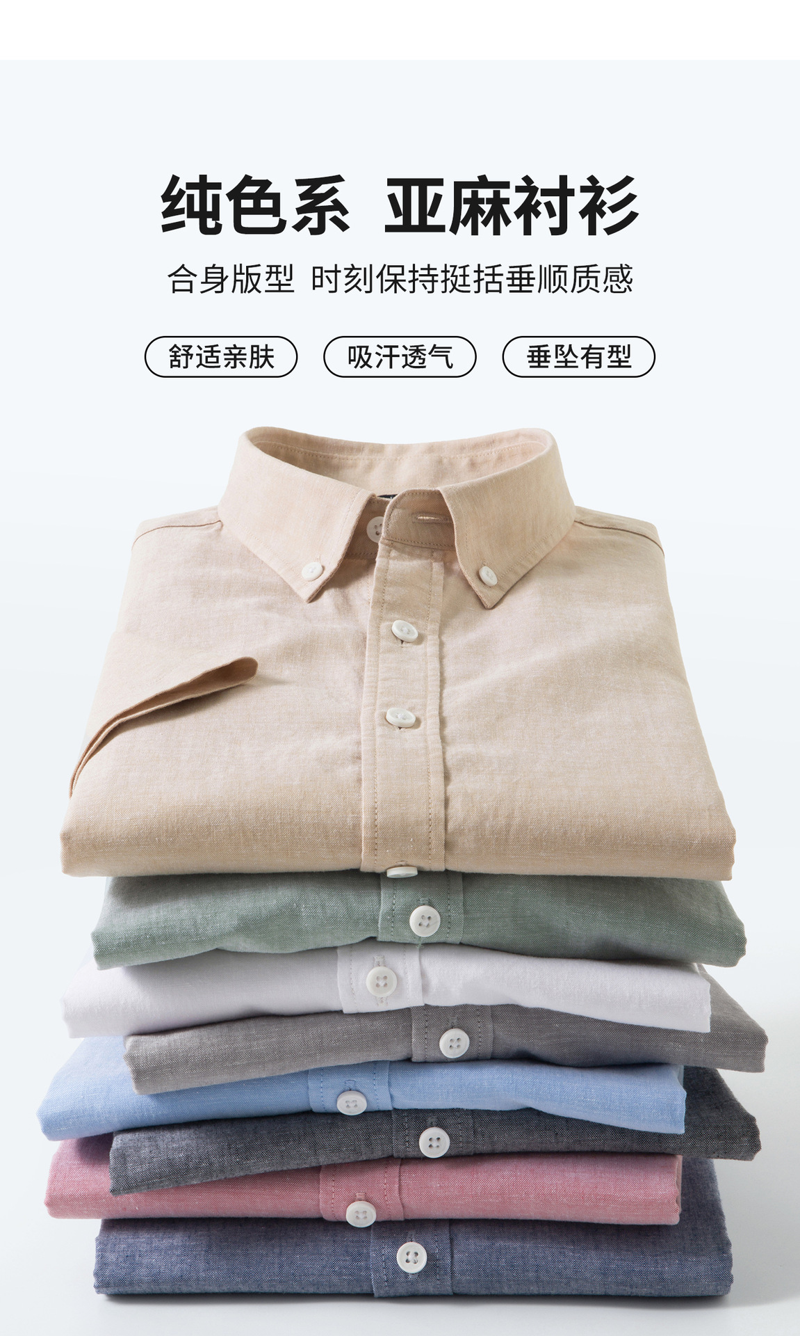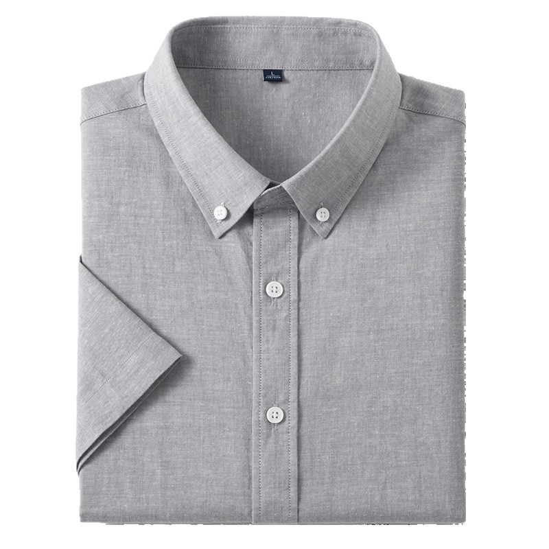 【30.5%亚麻】纯色男式衬衫短袖2026多色夏季透气抗皱休闲男衬衣