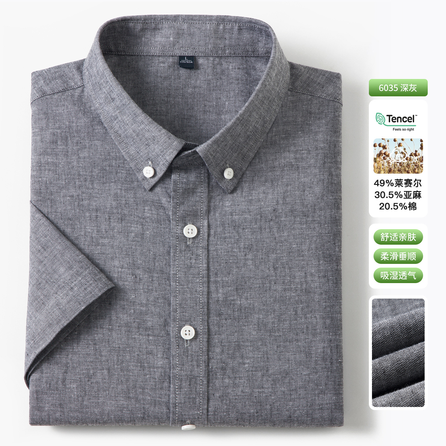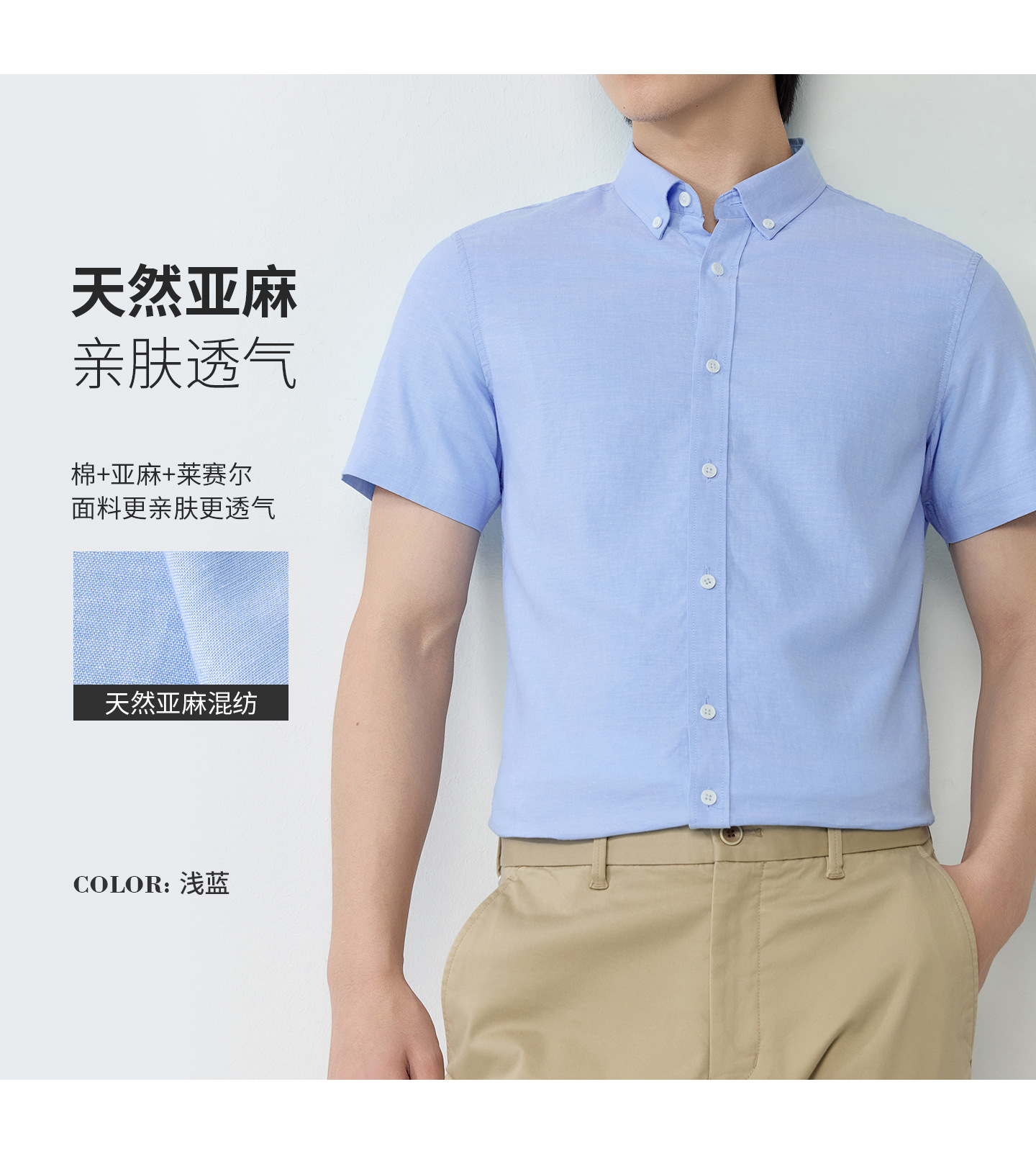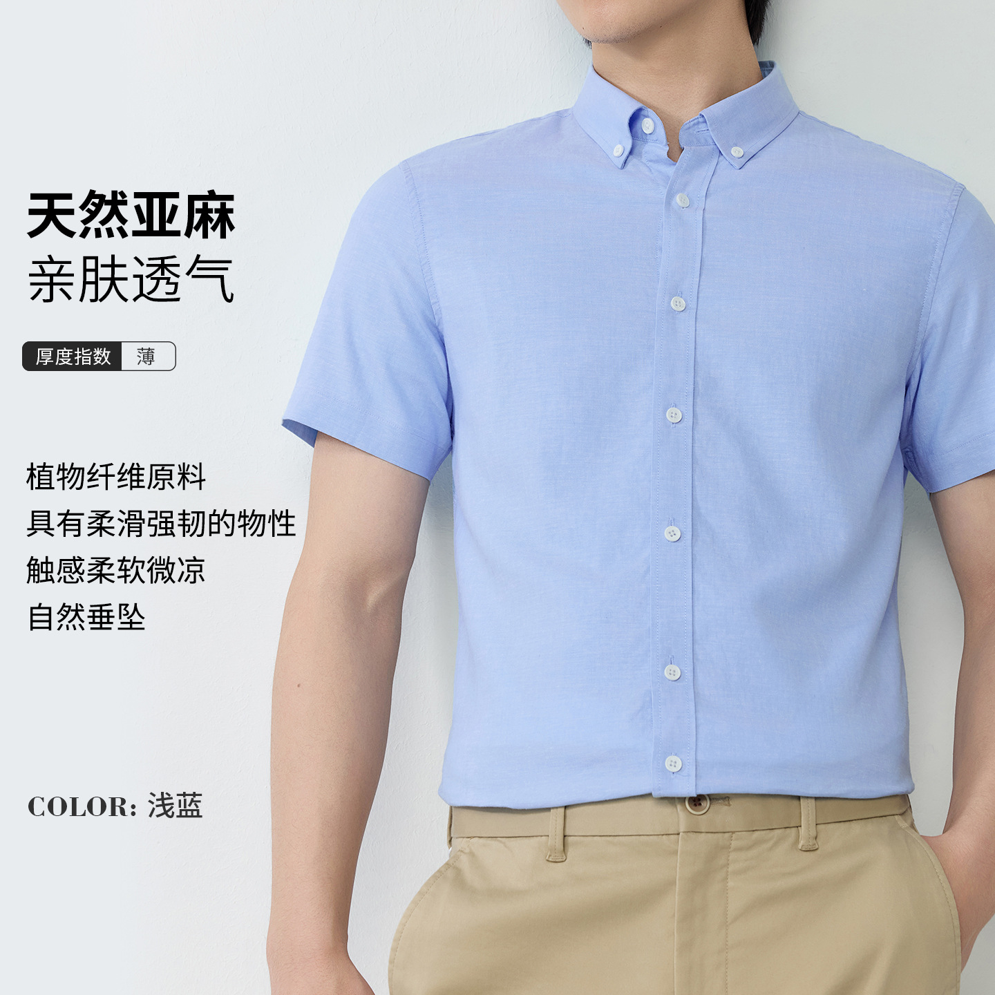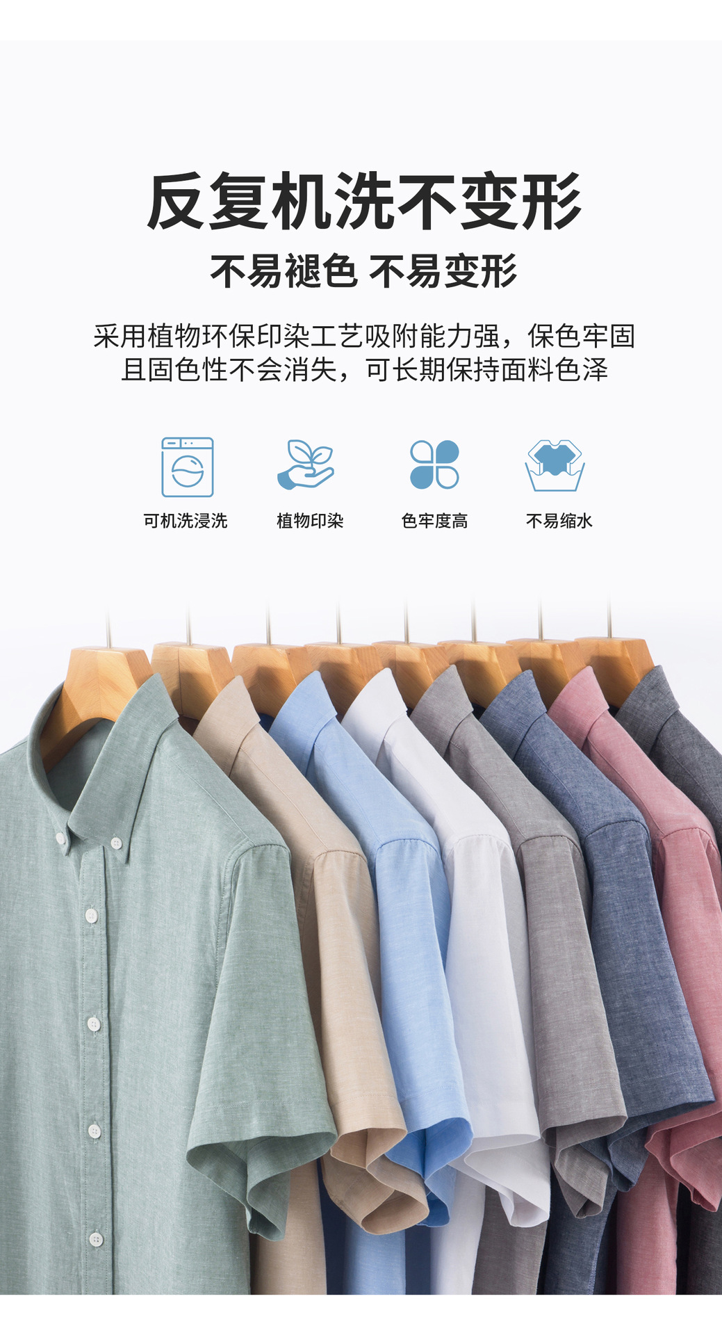 【30.5%亚麻】纯色男式衬衫短袖2026多色夏季透气抗皱休闲男衬衣