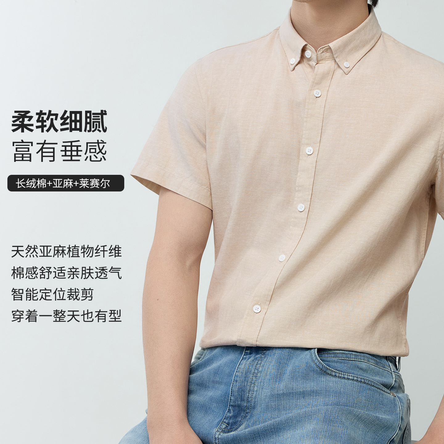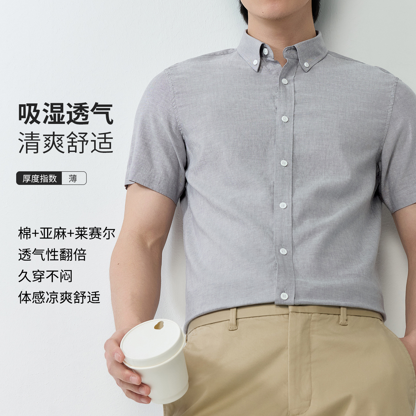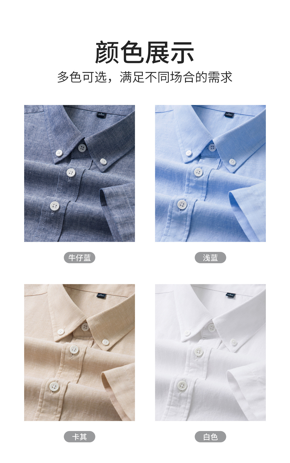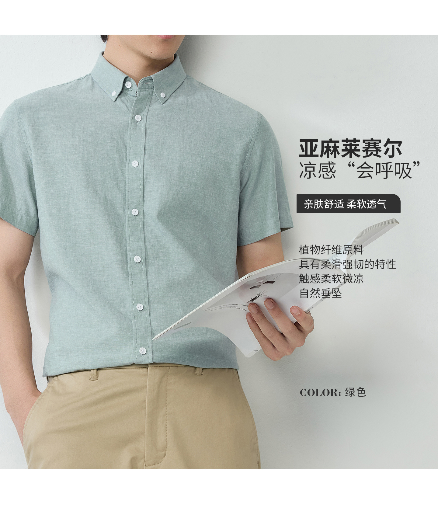 【30.5%亚麻】纯色男式衬衫短袖2026多色夏季透气抗皱休闲男衬衣