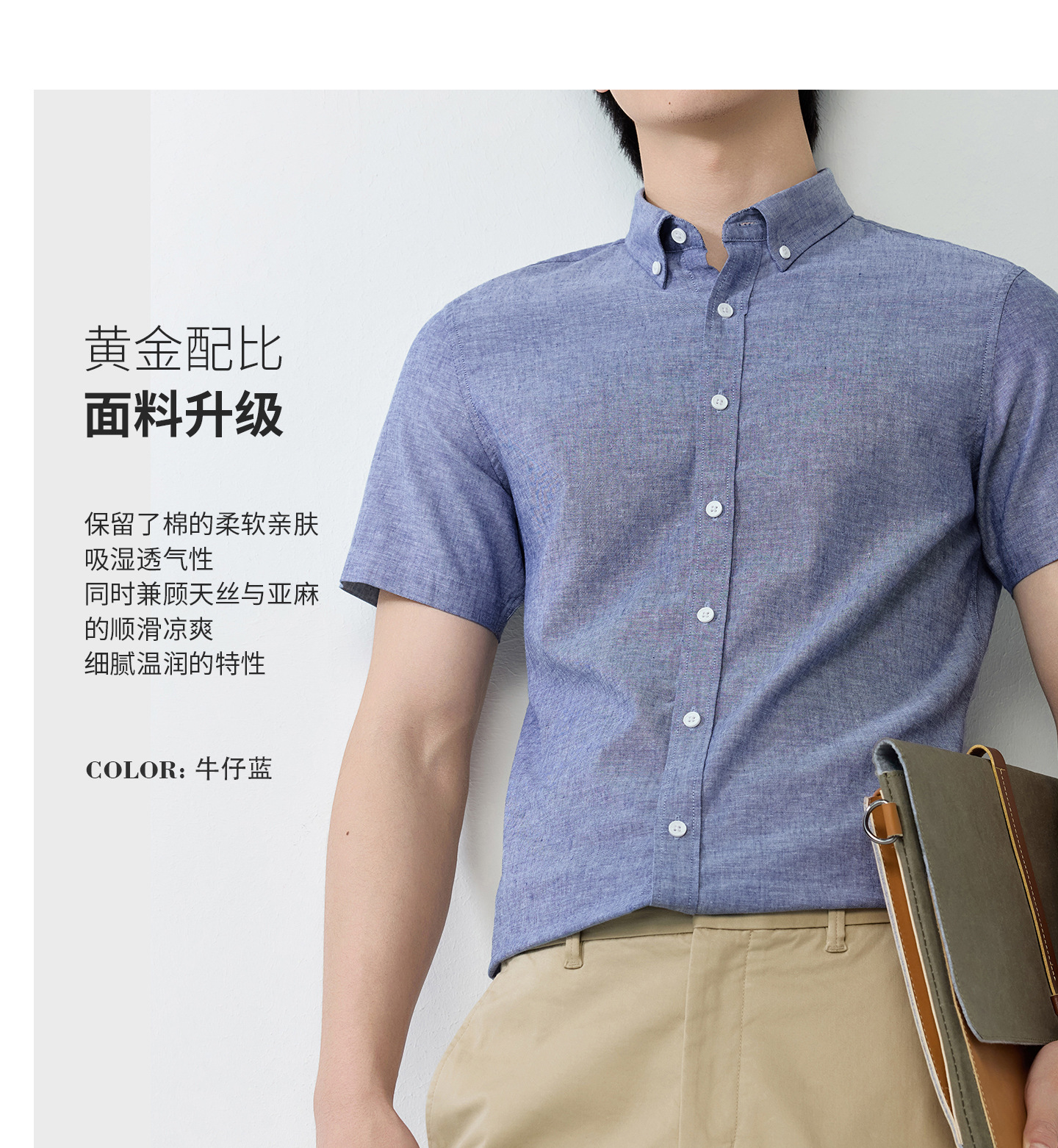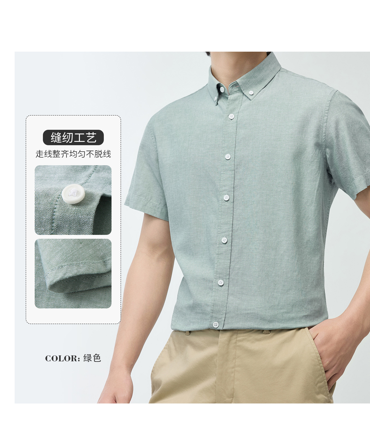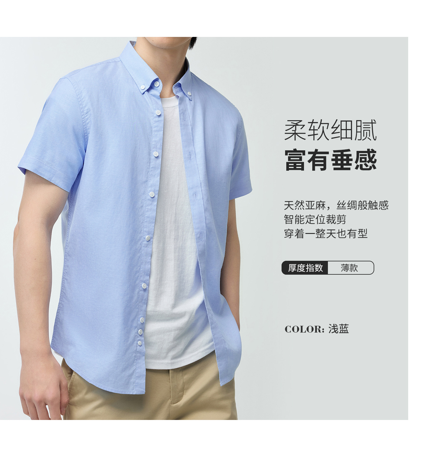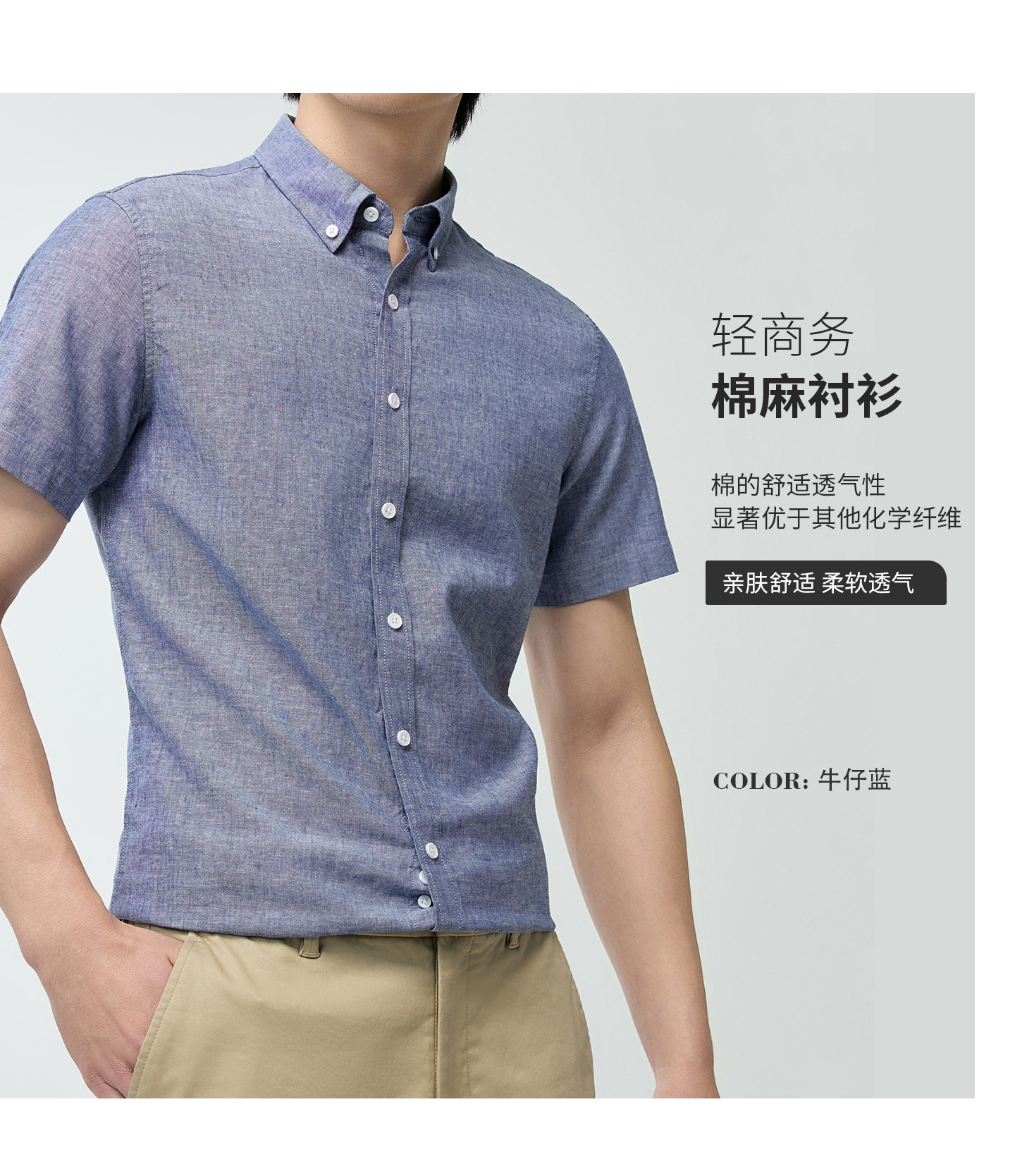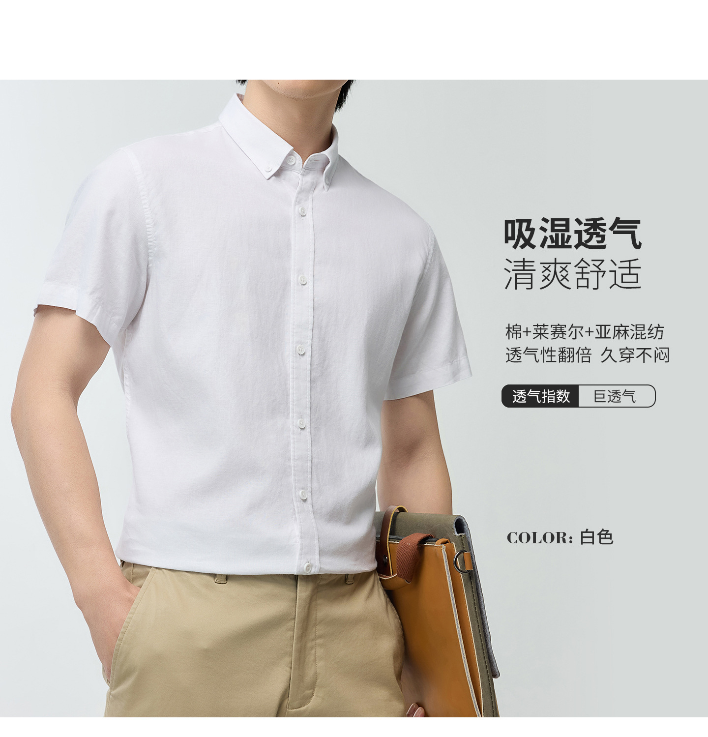 【30.5%亚麻】纯色男式衬衫短袖2026多色夏季透气抗皱休闲男衬衣
