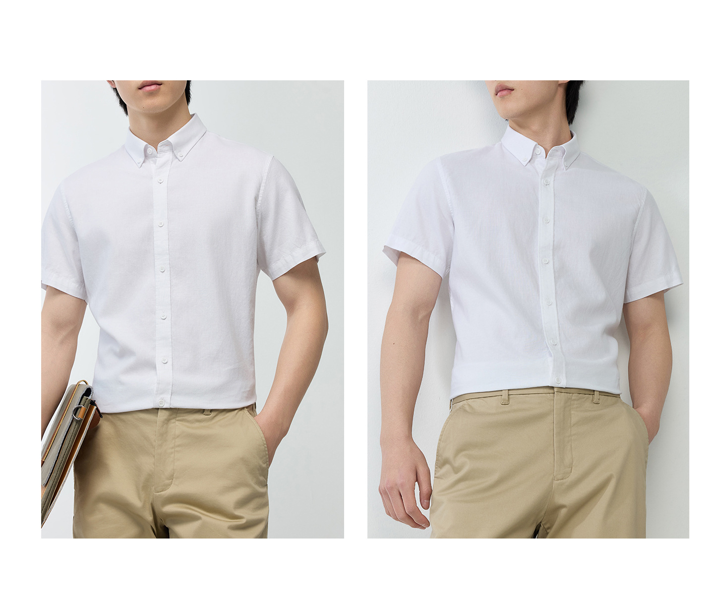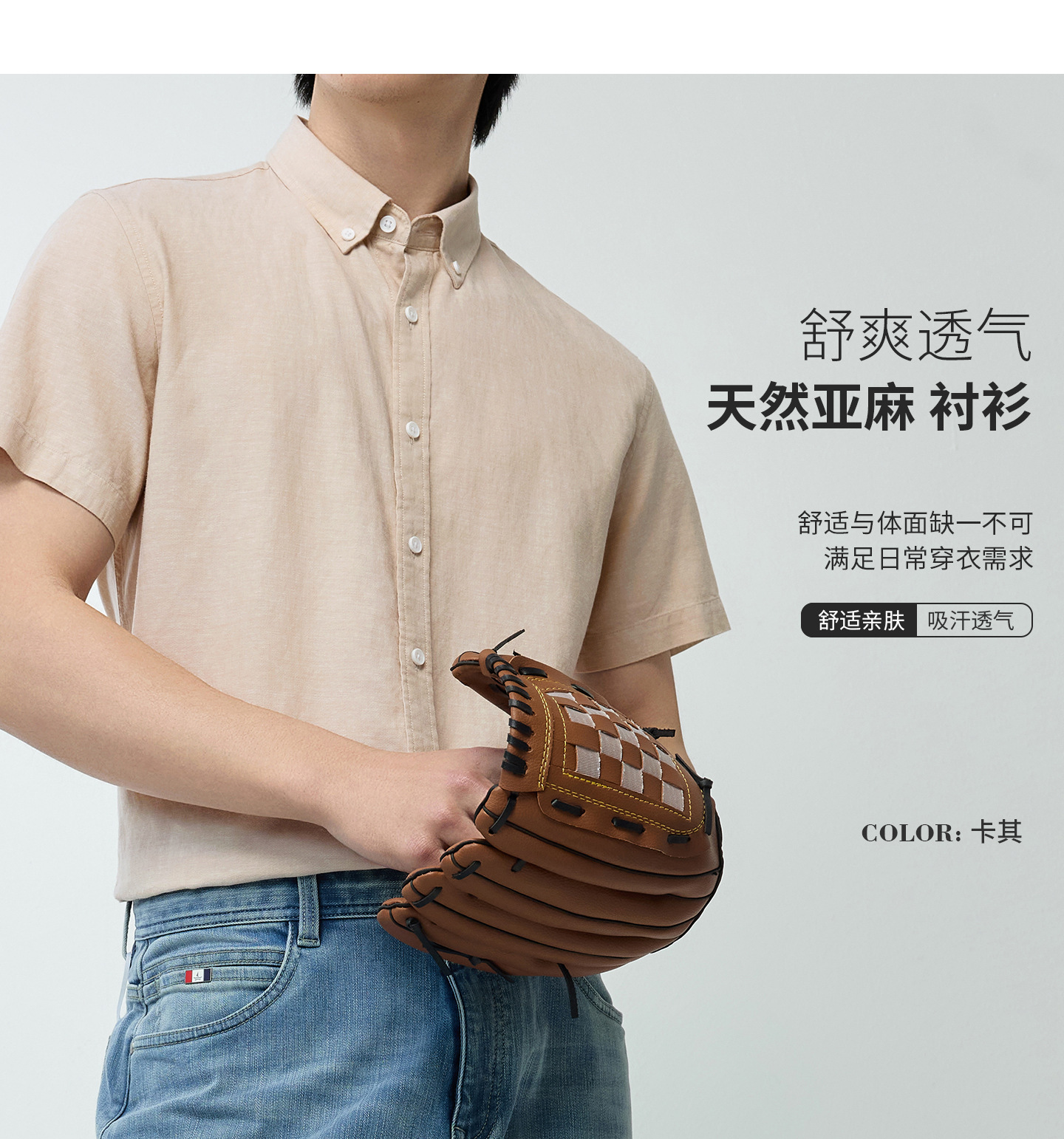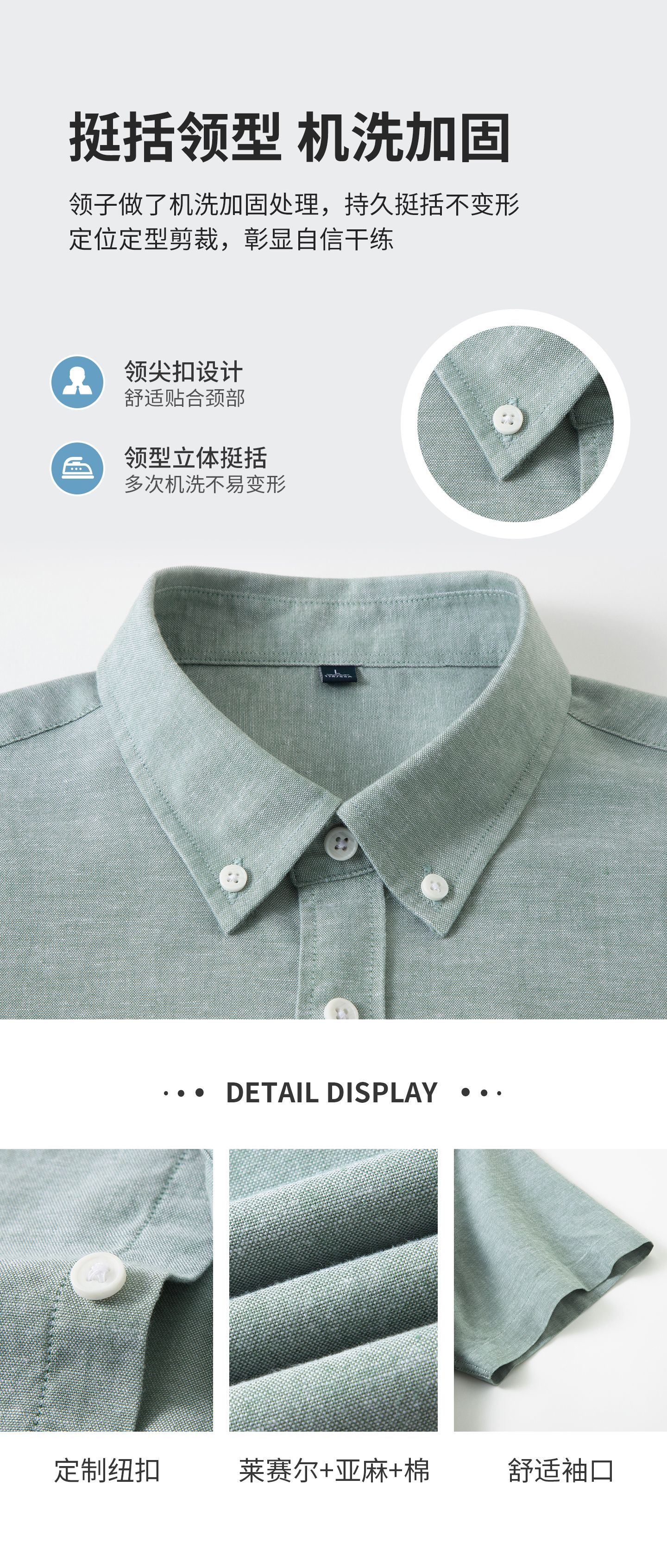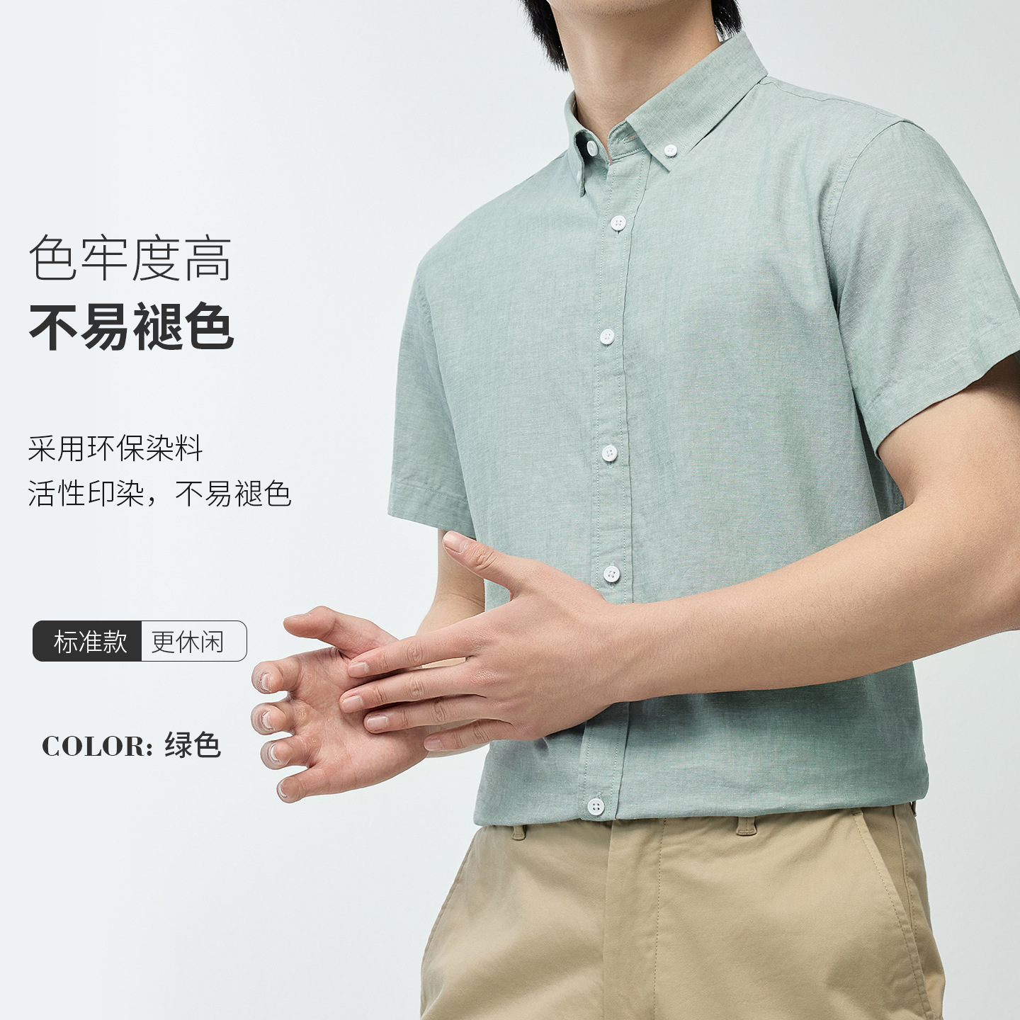 【30.5%亚麻】纯色男式衬衫短袖2026多色夏季透气抗皱休闲男衬衣