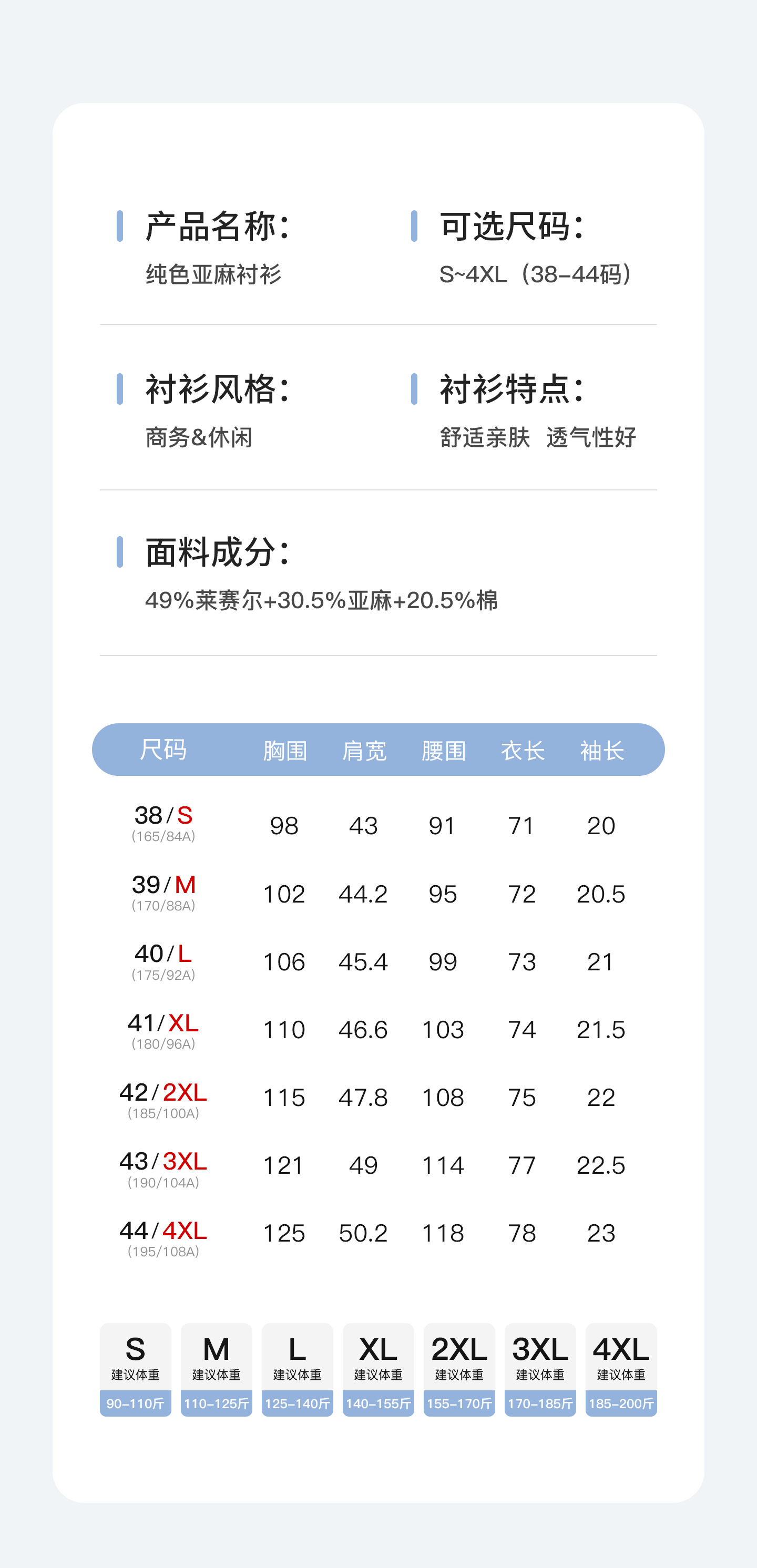 | 43/190/xxxl (recommended 85.00 kg-92.50 kg(43/190/XXXL (建议170-185斤)) | USD $0.0 | 209 piece available |