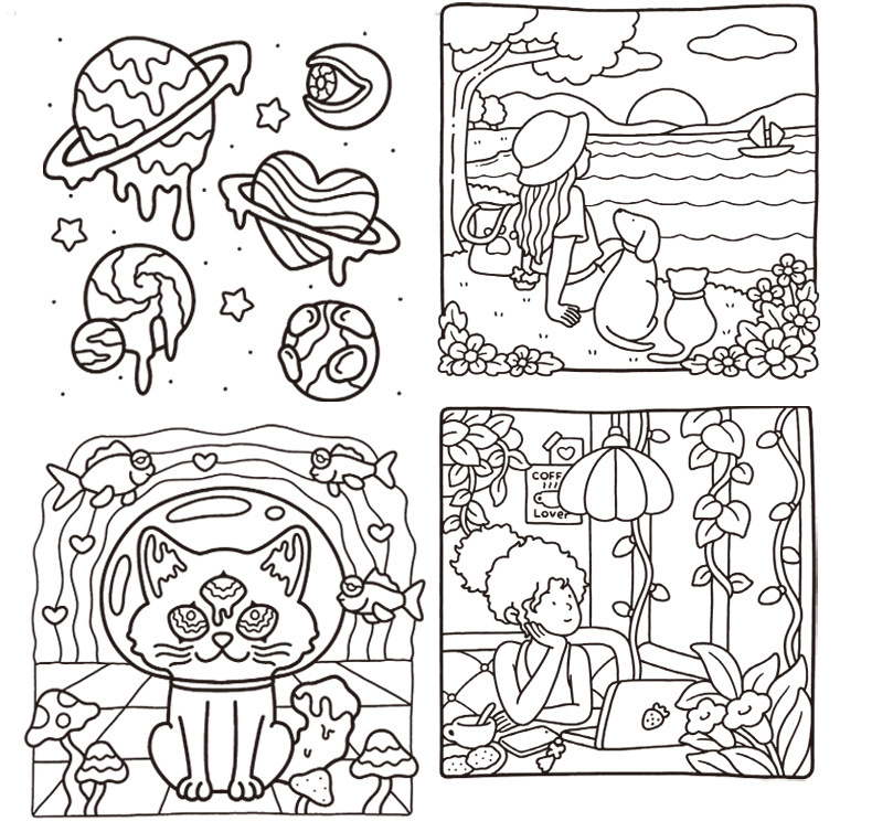 跨境涂色本 Spooky Cutie Coloring Book 怪兽系列儿童涂鸦填色本