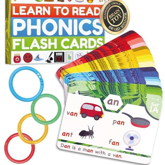 60张抽认卡;4 个分类环;480 个单词和图片;120 个句子;4 个难度等级 20 个音素家族组 尺寸:12*9*9cm,300g