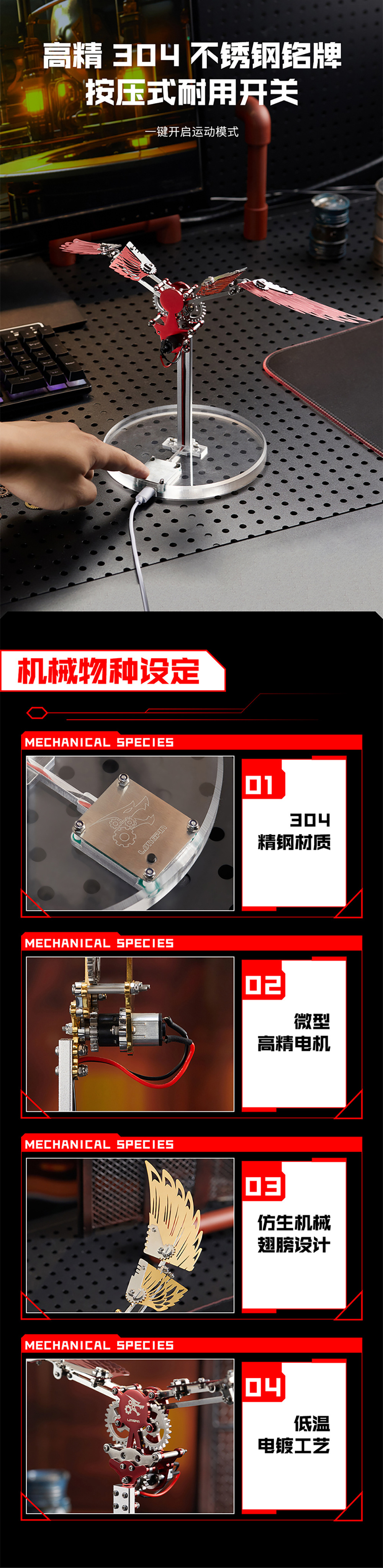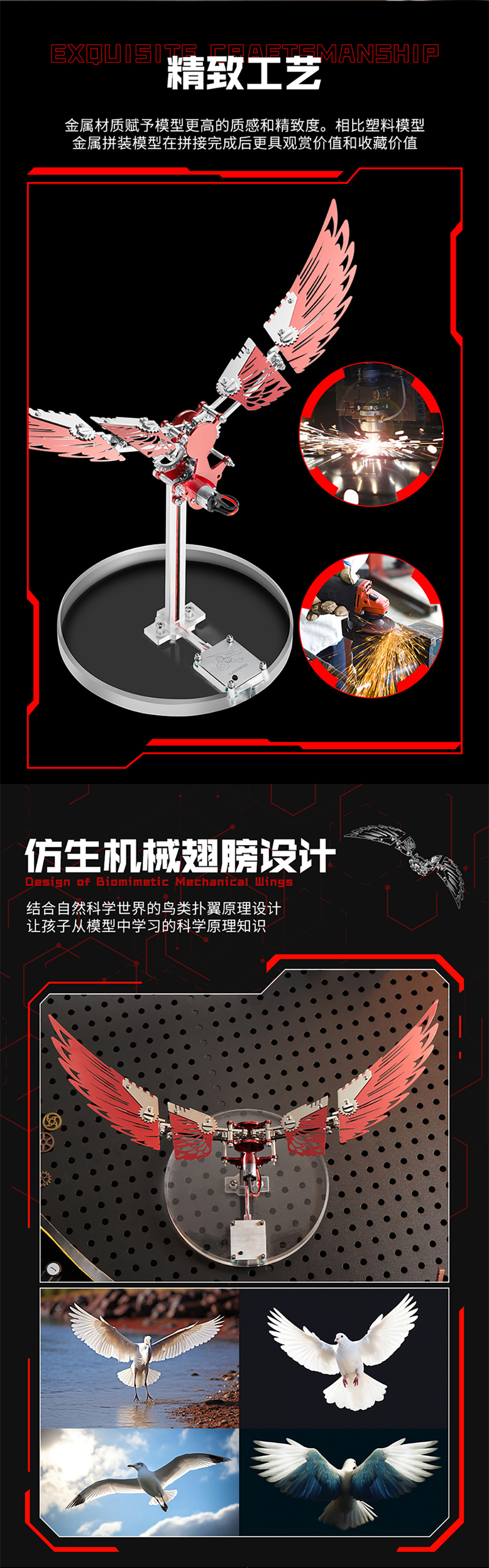 机械大黄蜂机械凤凰机械翼龙金属拼装模型高难度拼图创意礼物玩具