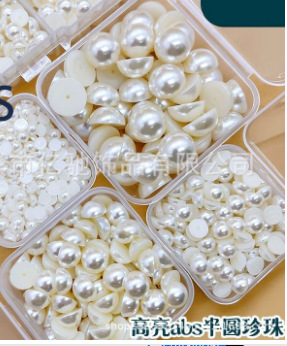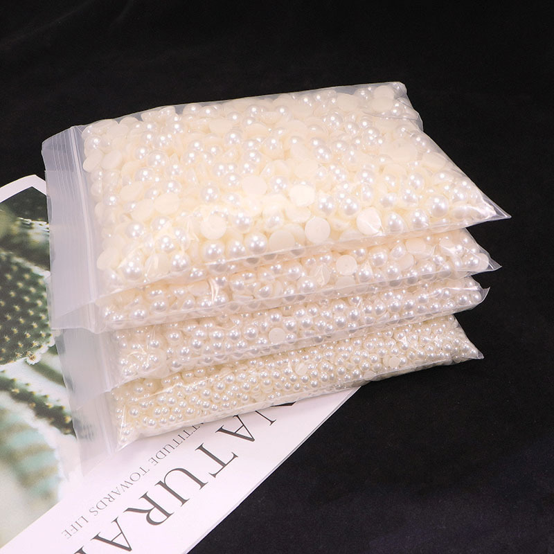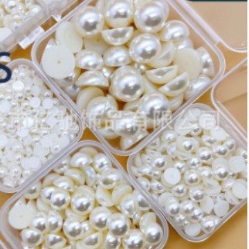 DIY饰品配件手工材料ABS圆形半面平底贴片美甲珍珠高亮半圆仿珍珠