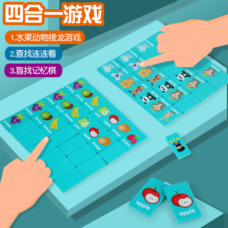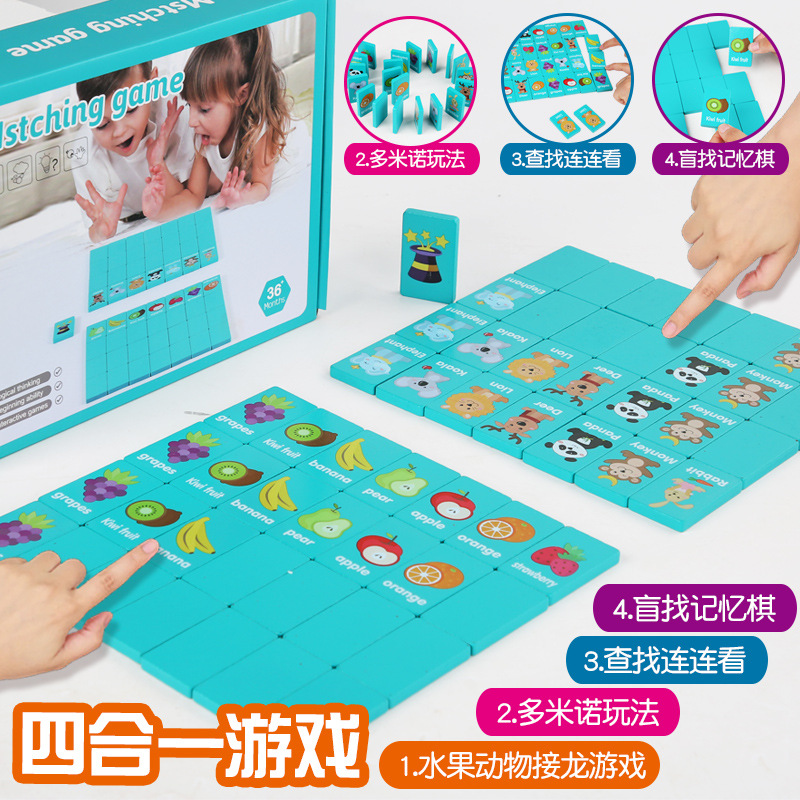 儿童益智玩具连连看四合一接龙游戏多米诺骨牌桌游记忆棋思维训练