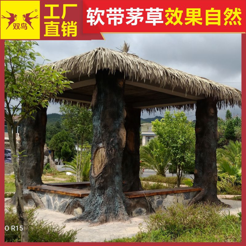双鸟皇冠仿真茅草长款毛草屋顶茅草凉亭整卷稻草凉亭草人造茅草屋