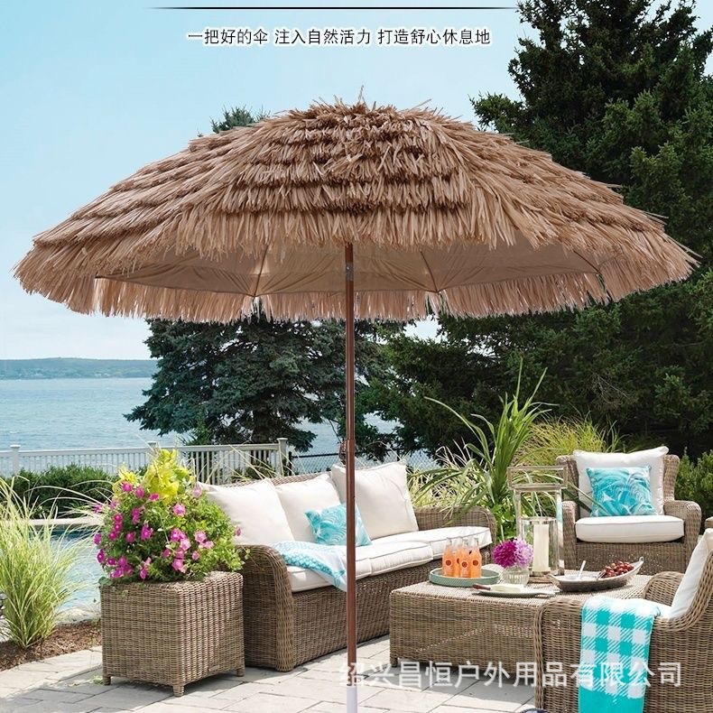 户外仿真稻草伞沙滩庭院户外遮阳稻草伞仿真稻草防晒农家乐茅草伞