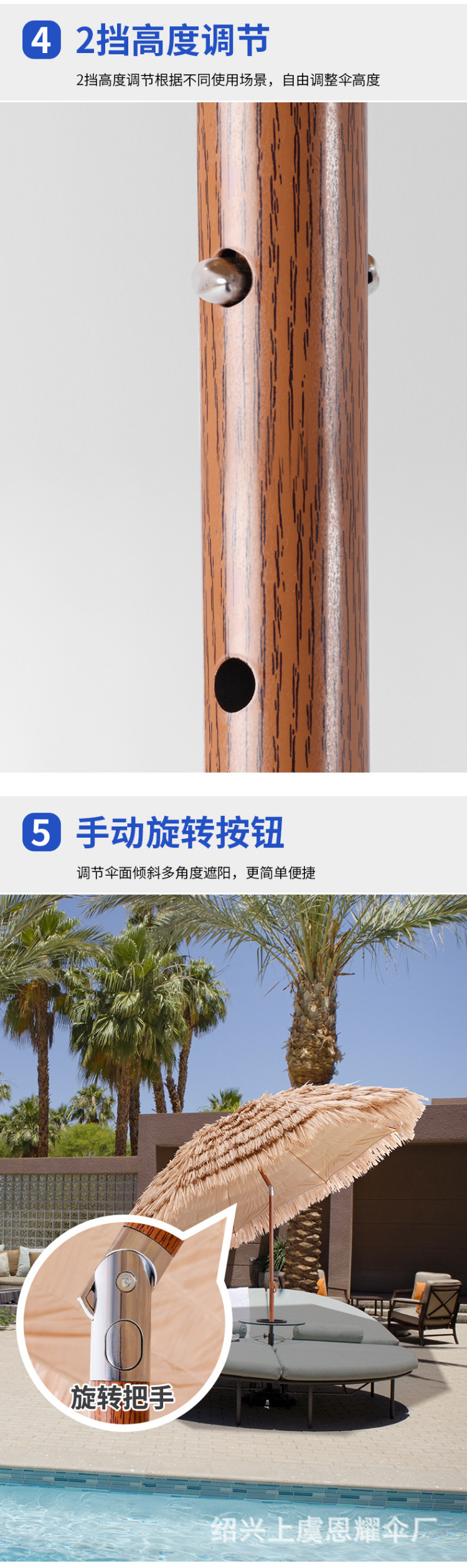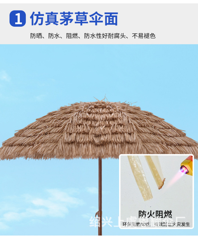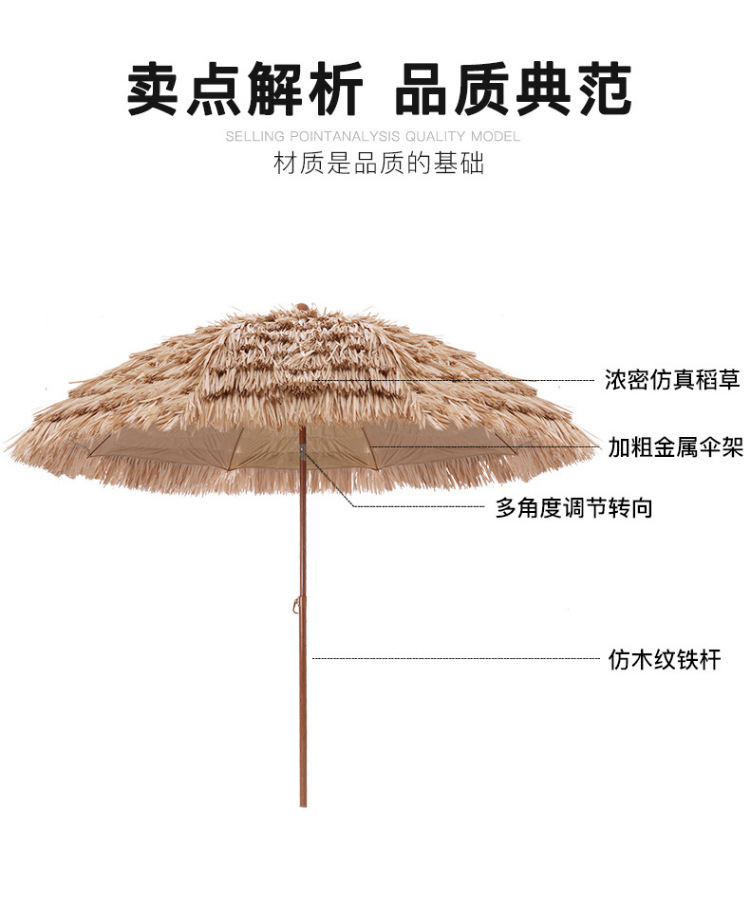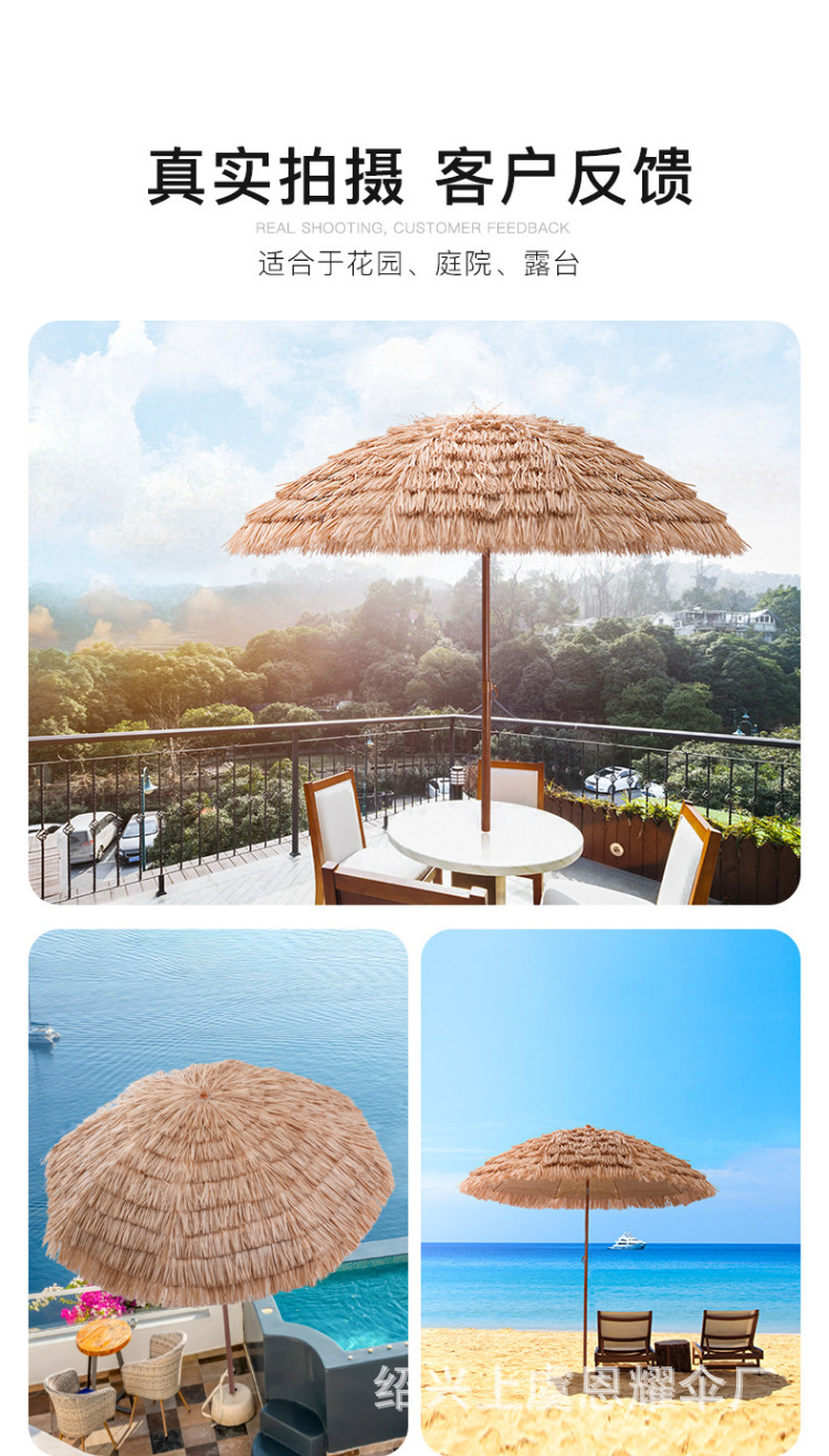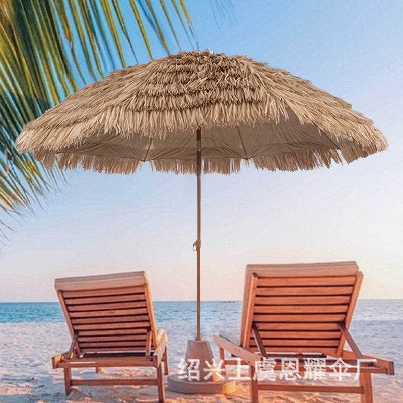 沙滩稻草伞户外遮阳仿真稻草防晒沙滩伞庭院农家乐景区花园茅草伞