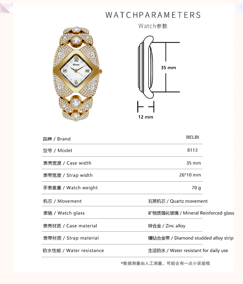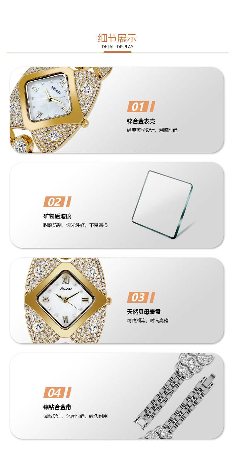 BELBI标比品牌镶钻轻奢小众腕表厂家直销热销石英表跨境电商