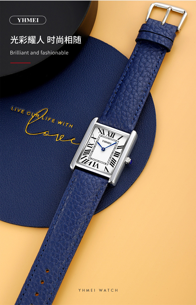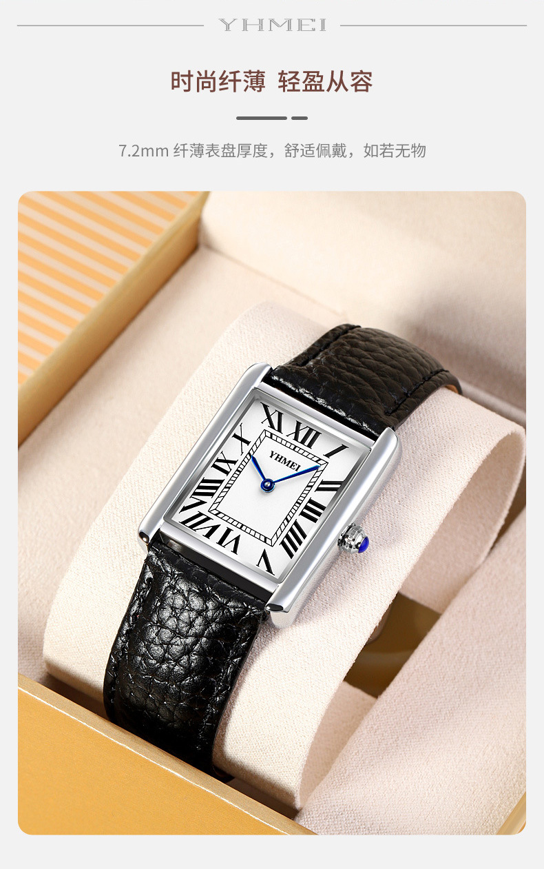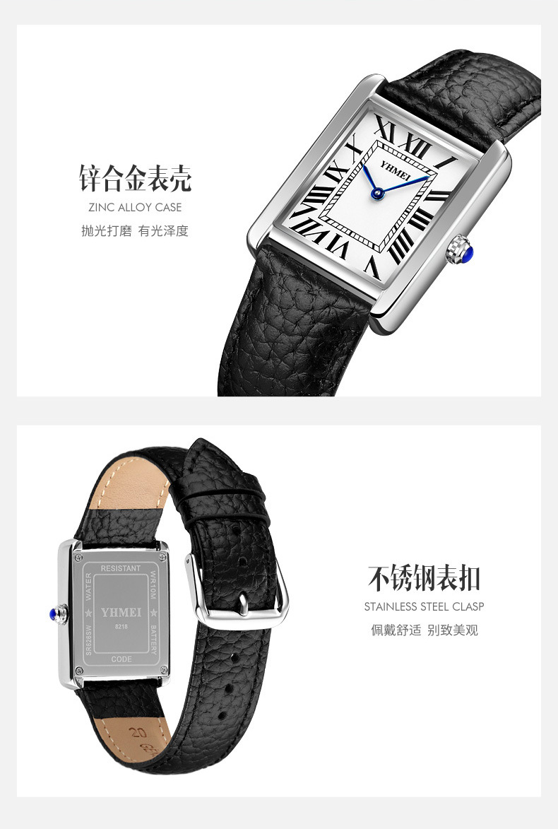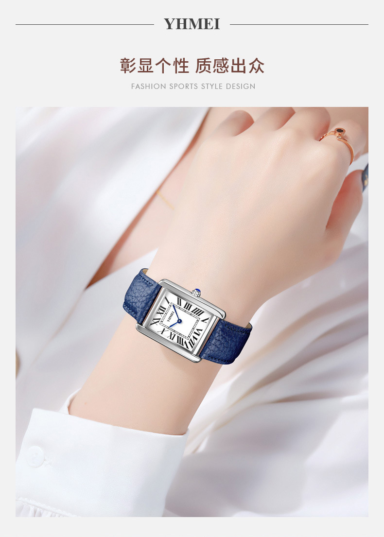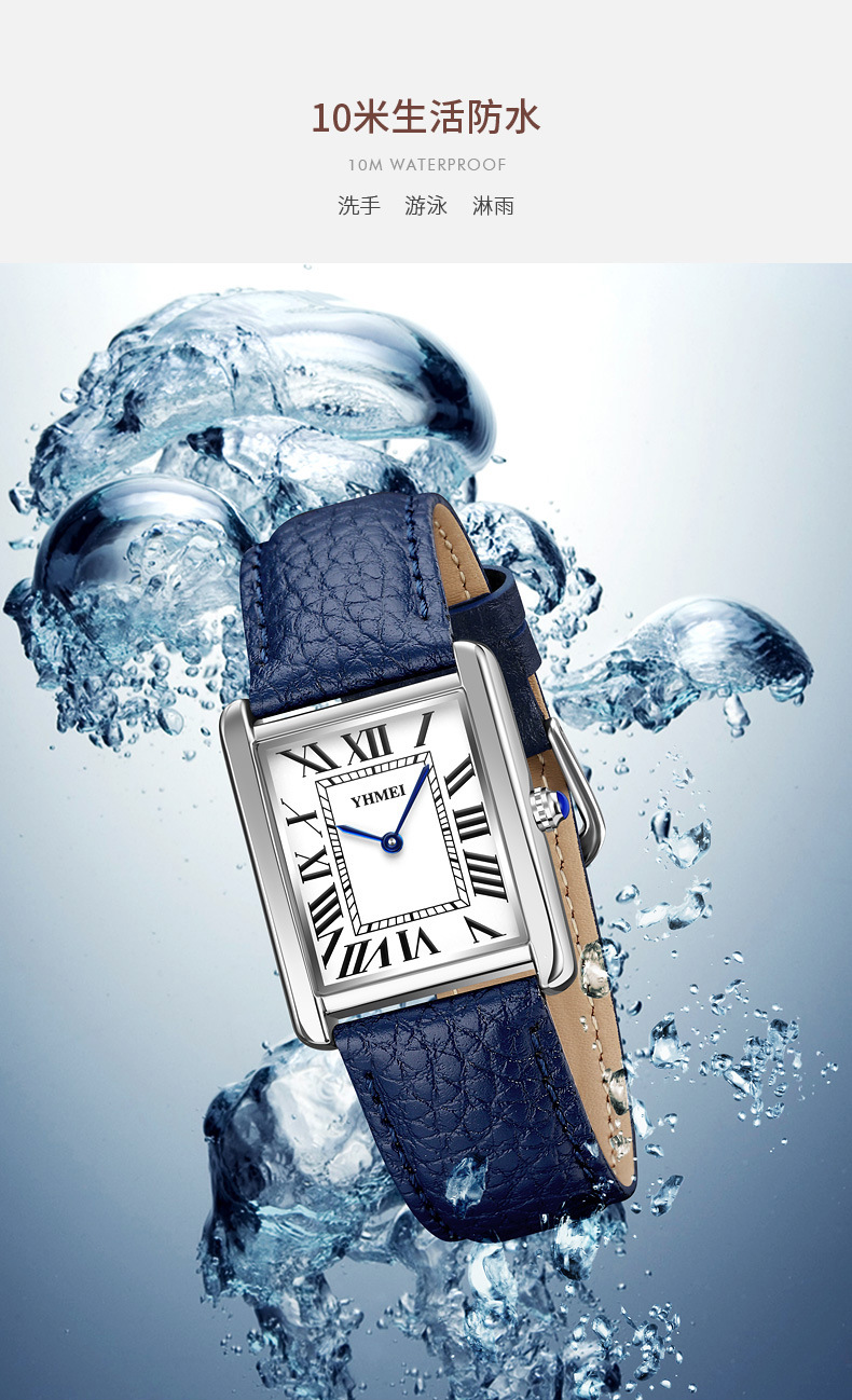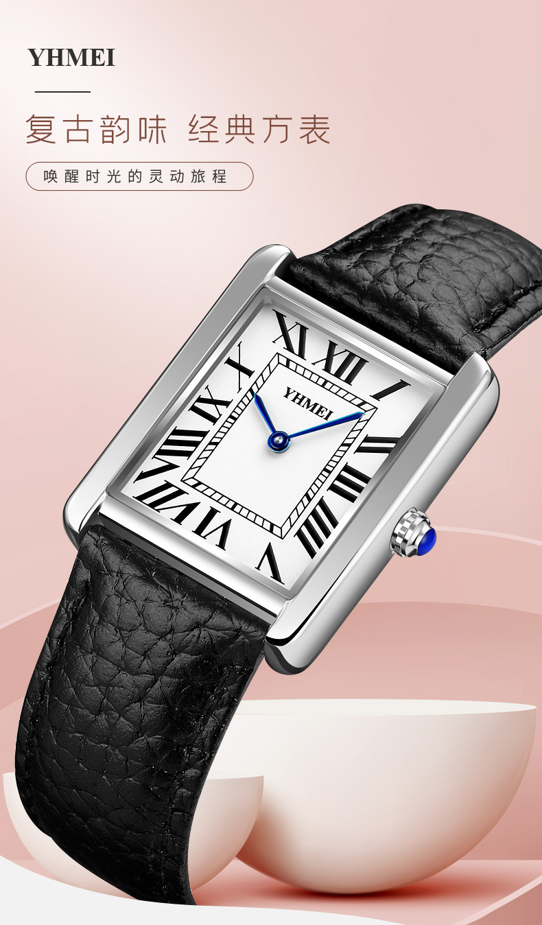 YHMEI永恒美时尚经典方形女士表简约复古时尚防水皮带石英腕表