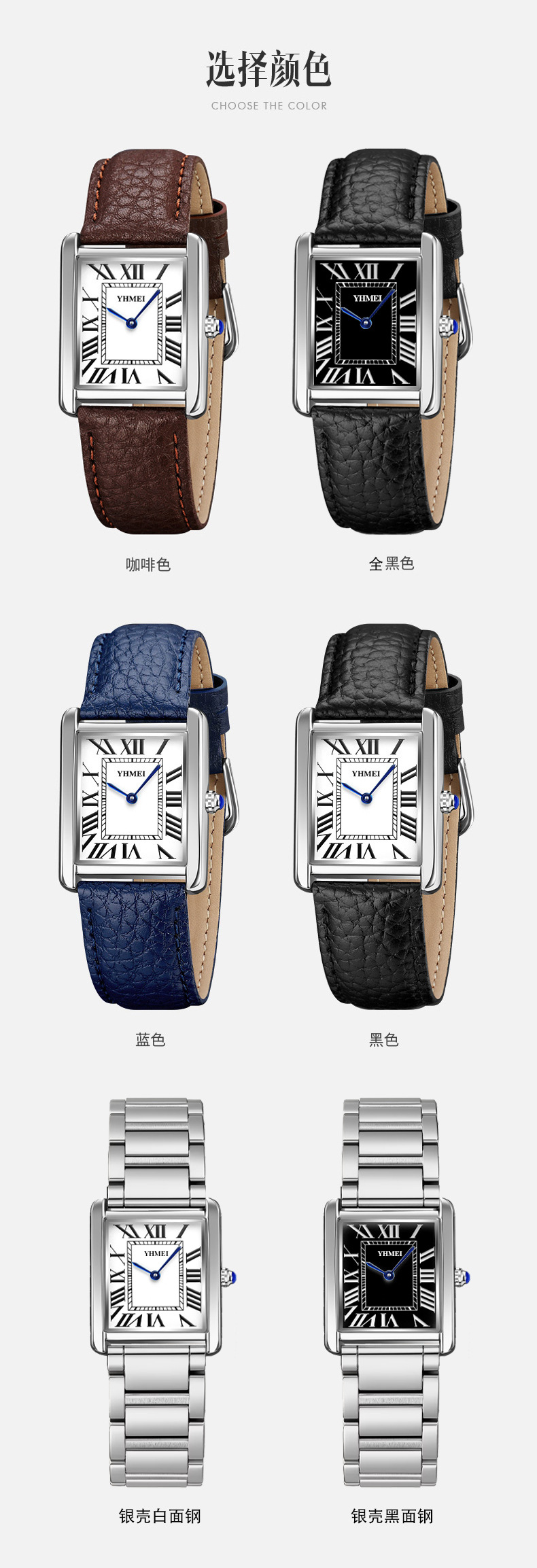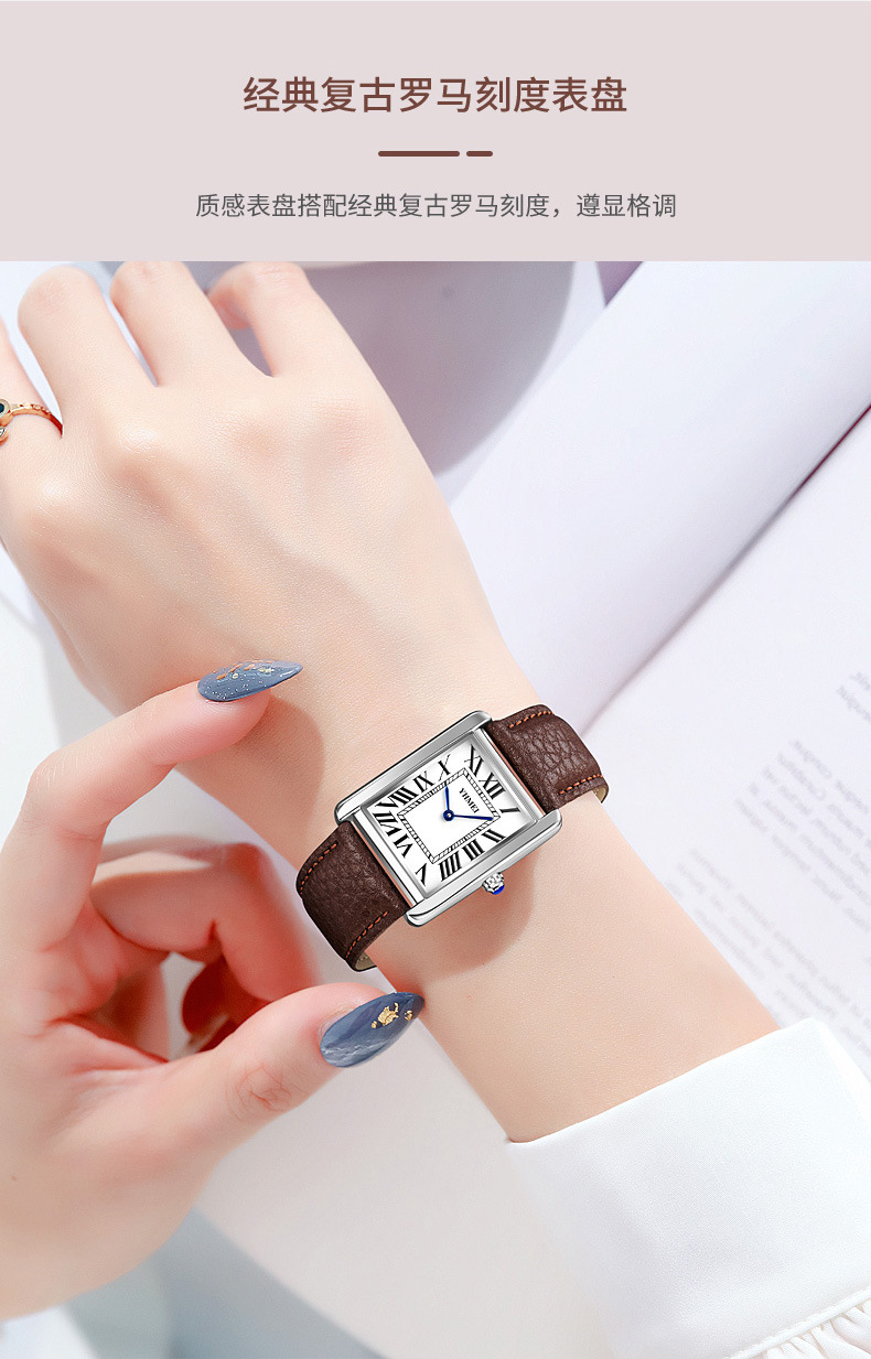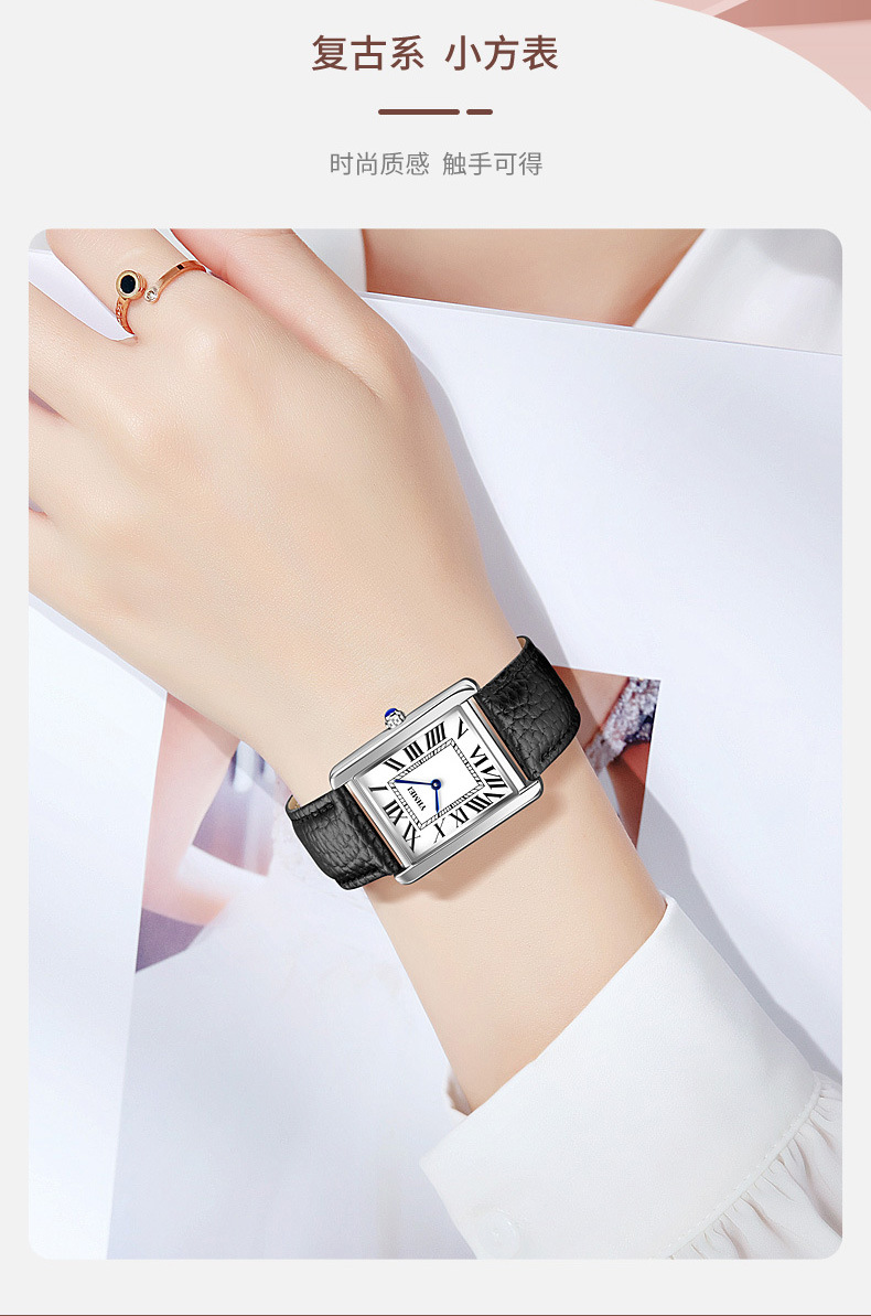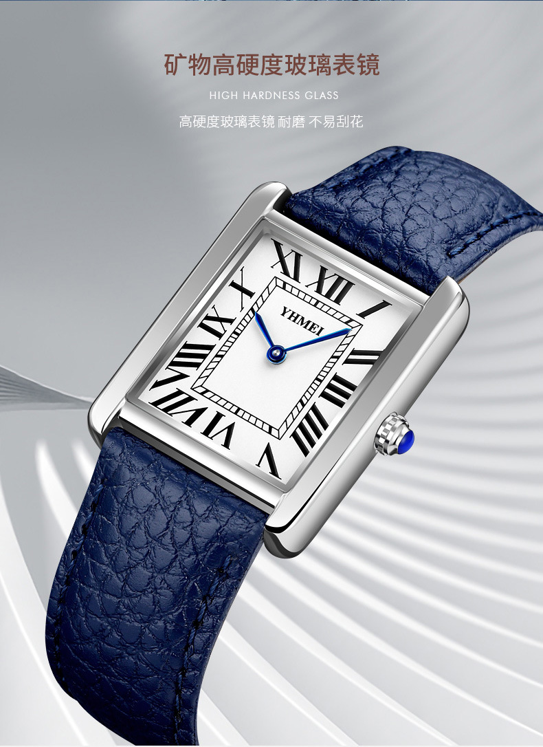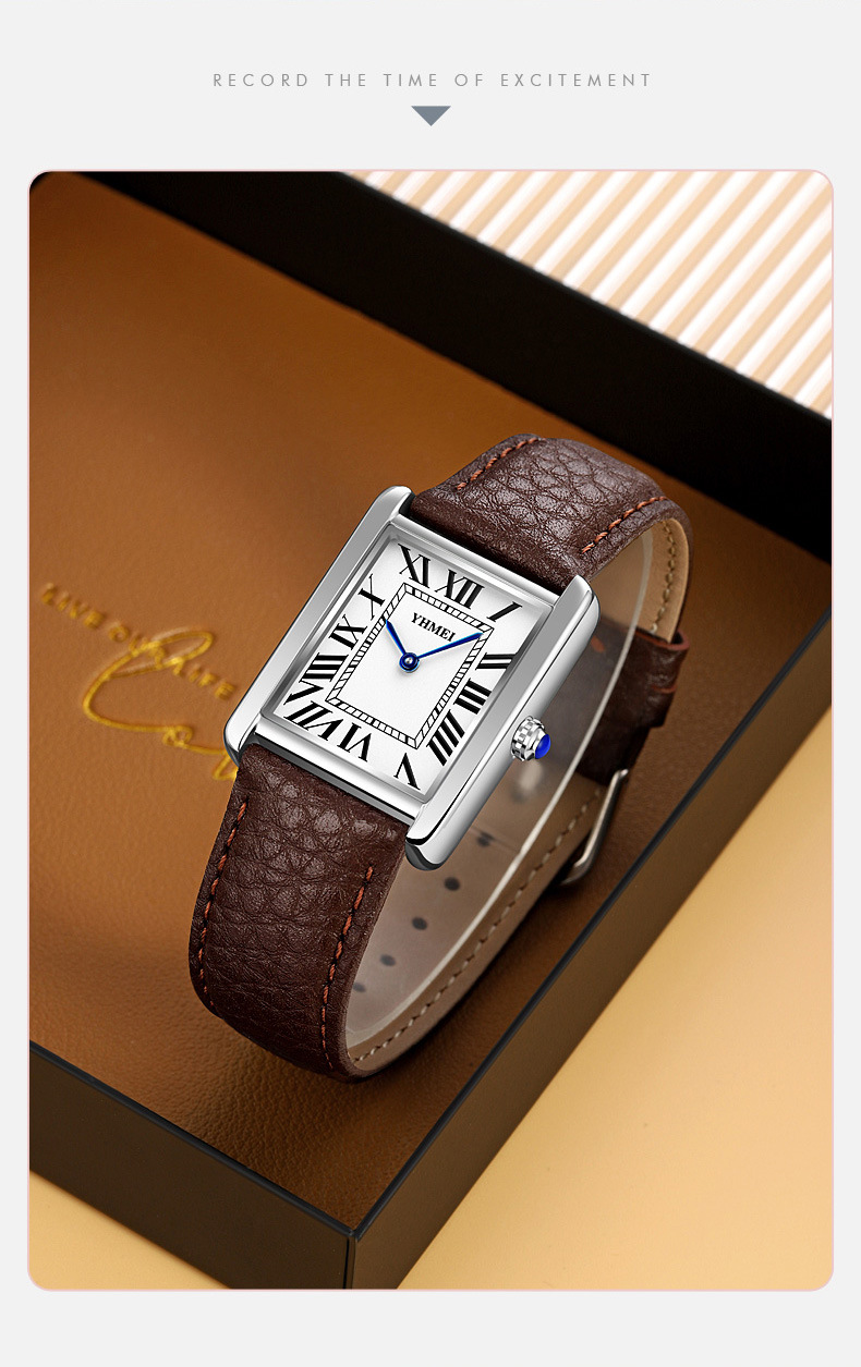 YHMEI永恒美时尚经典方形女士表简约复古时尚防水皮带石英腕表
