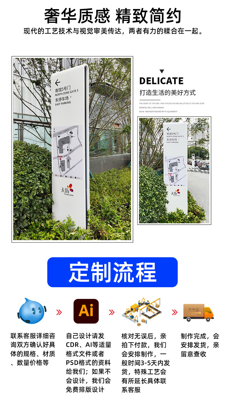 精神堡垒导视牌户外停车场指示牌定制商场立式标识牌不锈钢广告牌