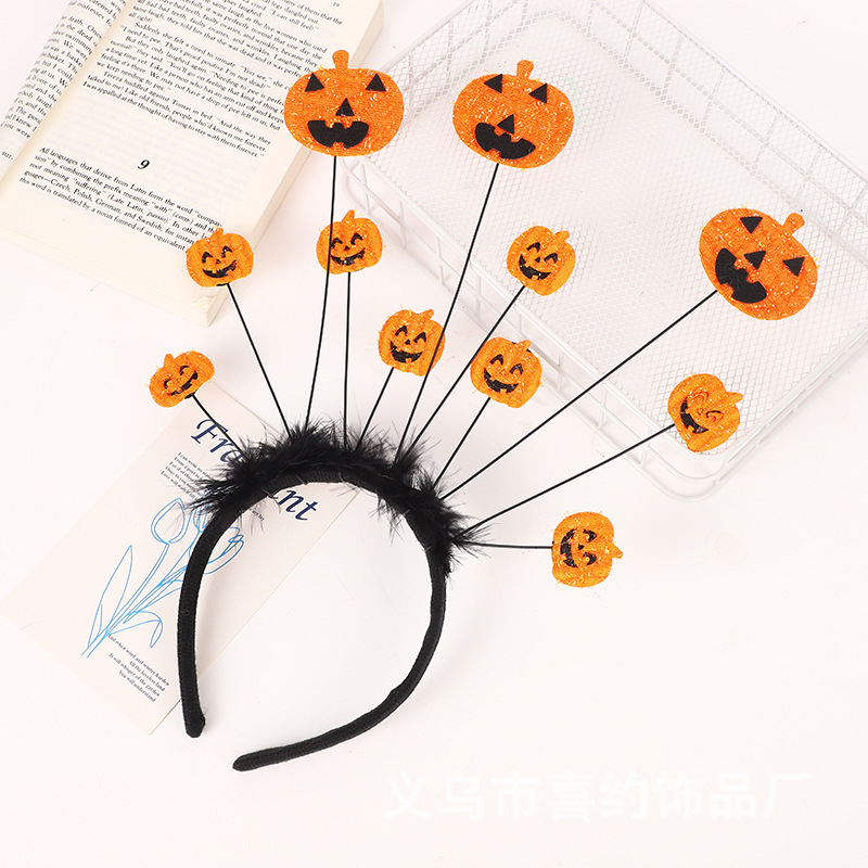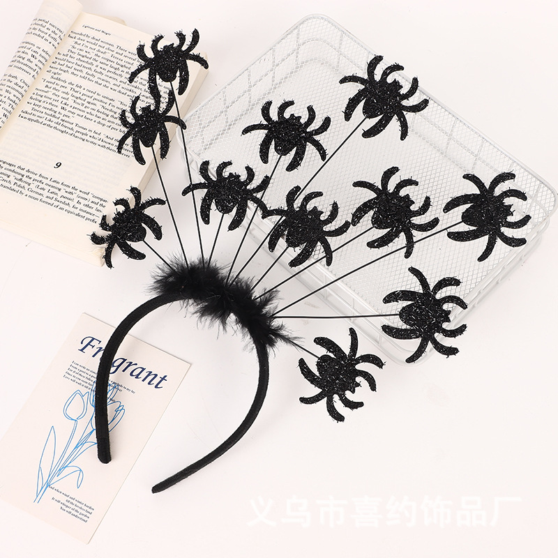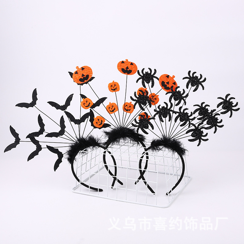 万圣节蜘蛛 蝙蝠 南瓜发箍酒吧装饰节日气氛鬼节羽毛头饰厂家现货