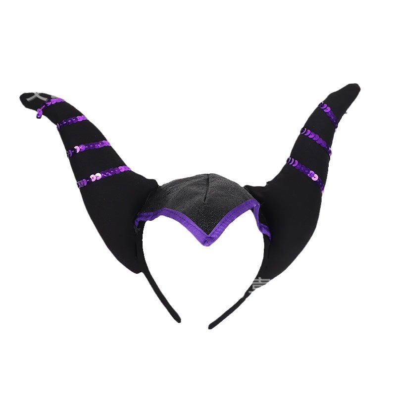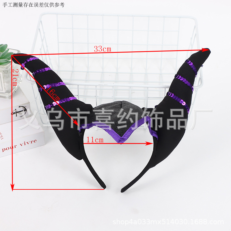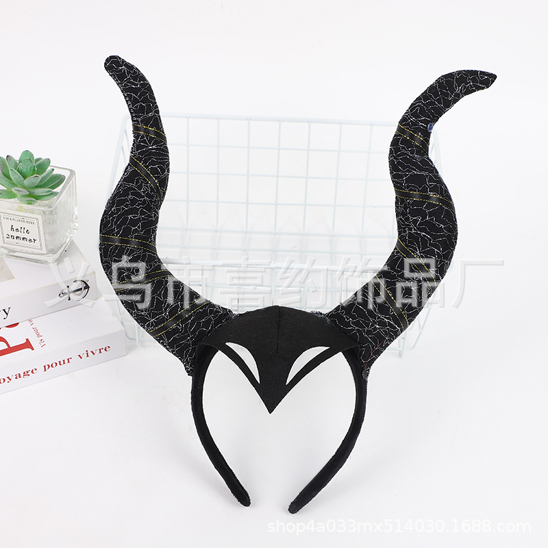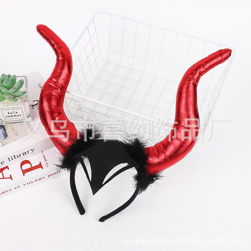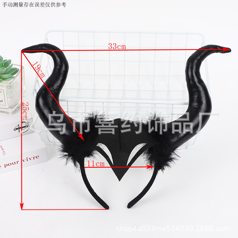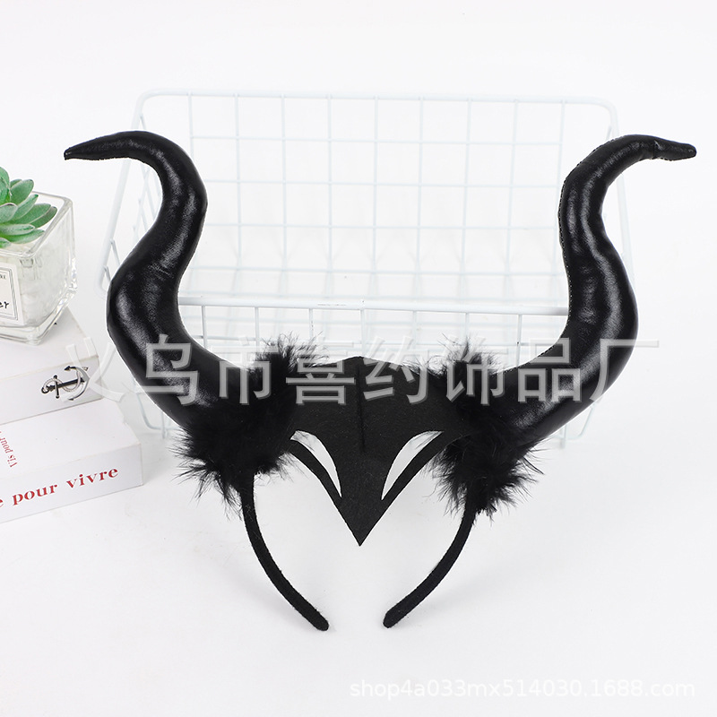 万圣节恶魔大号羽毛牛角发箍 鬼节舞会派对装扮表演牛角头饰现货