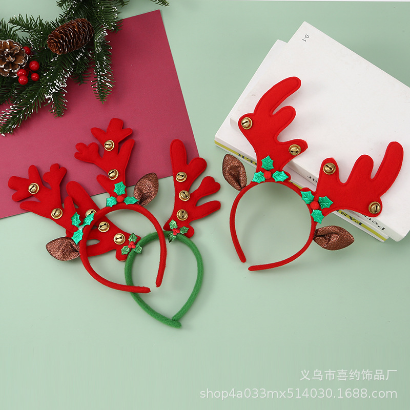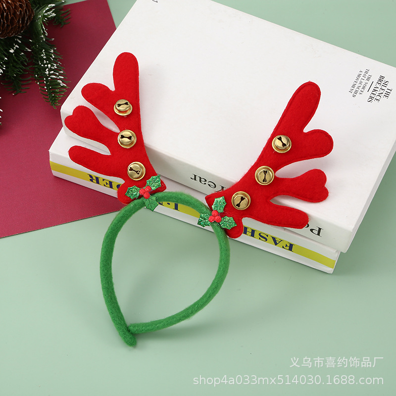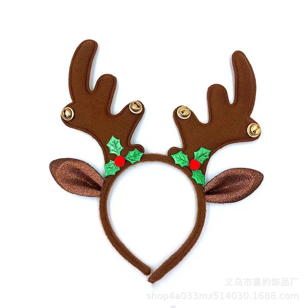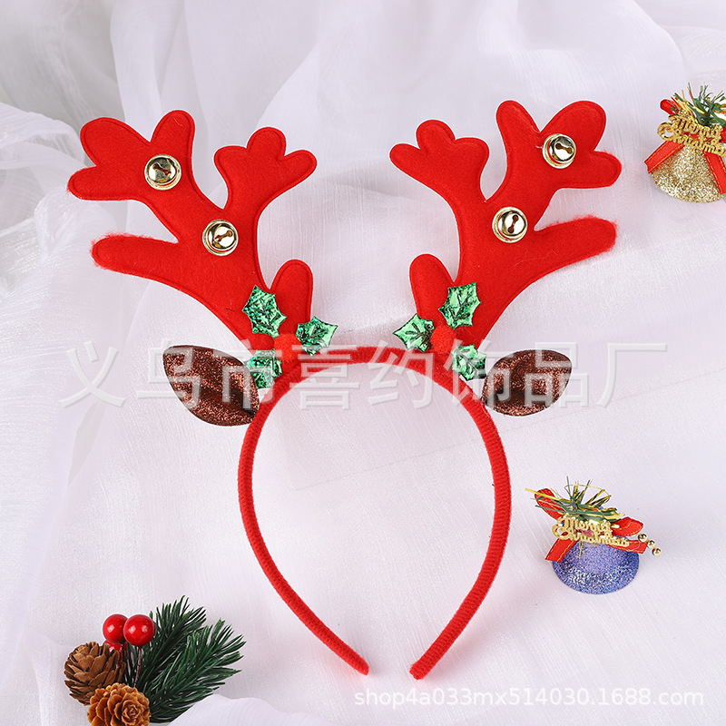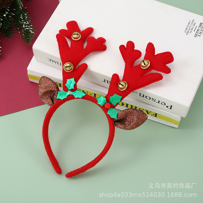 跨境圣诞节鹿角铃铛发箍节日儿童头饰麋鹿角头箍多发树枝耳朵头扣