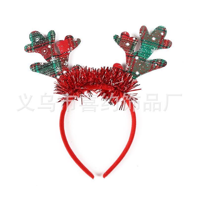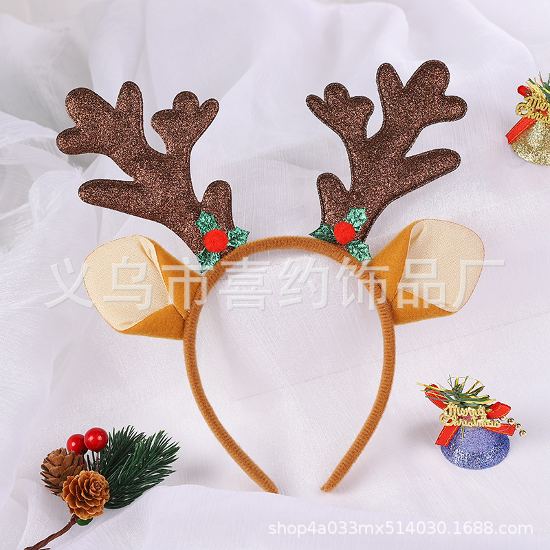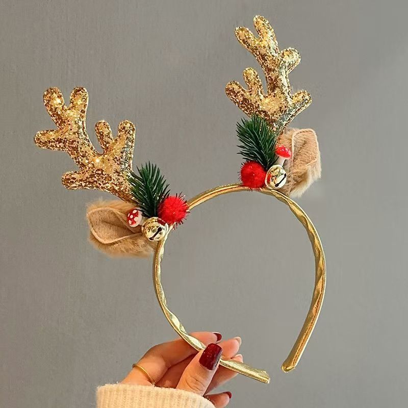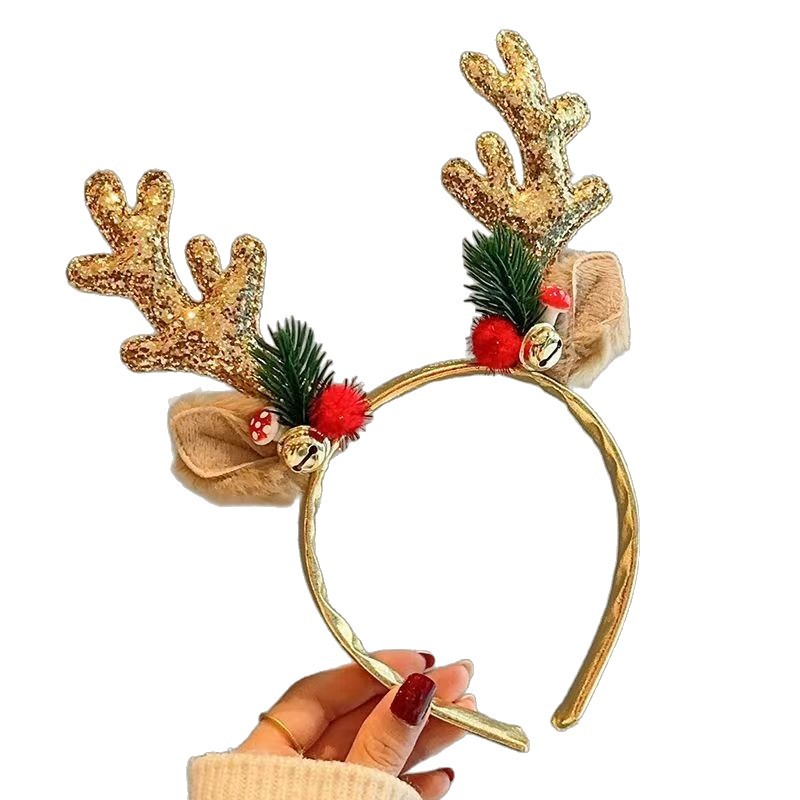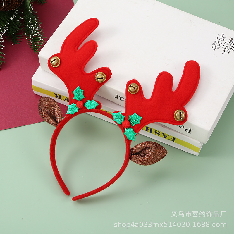 跨境圣诞节鹿角铃铛发箍节日儿童头饰麋鹿角头箍多发树枝耳朵头扣