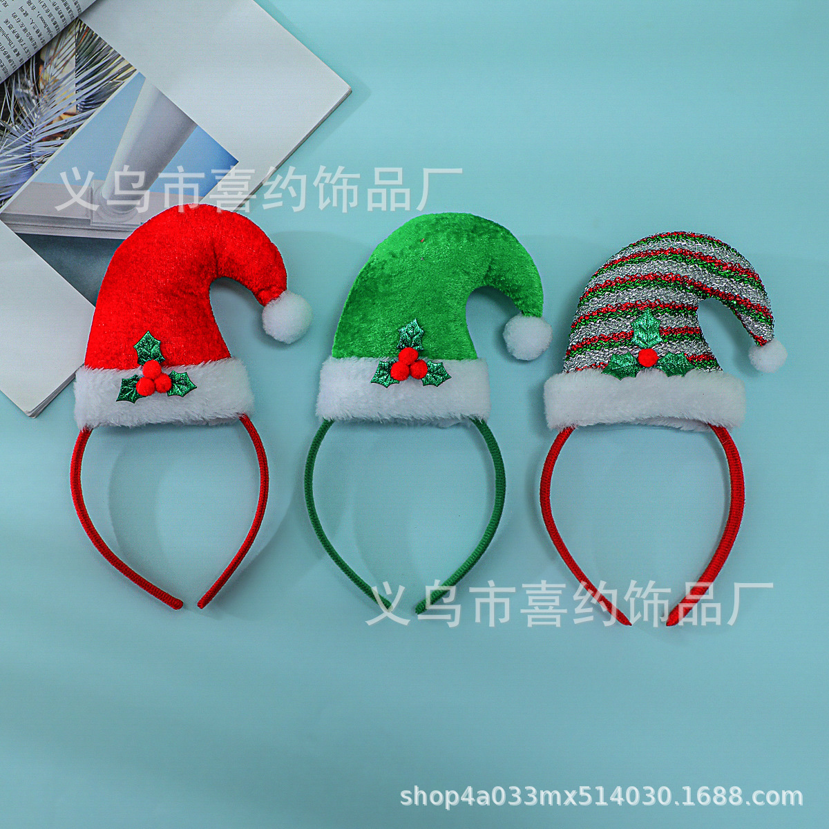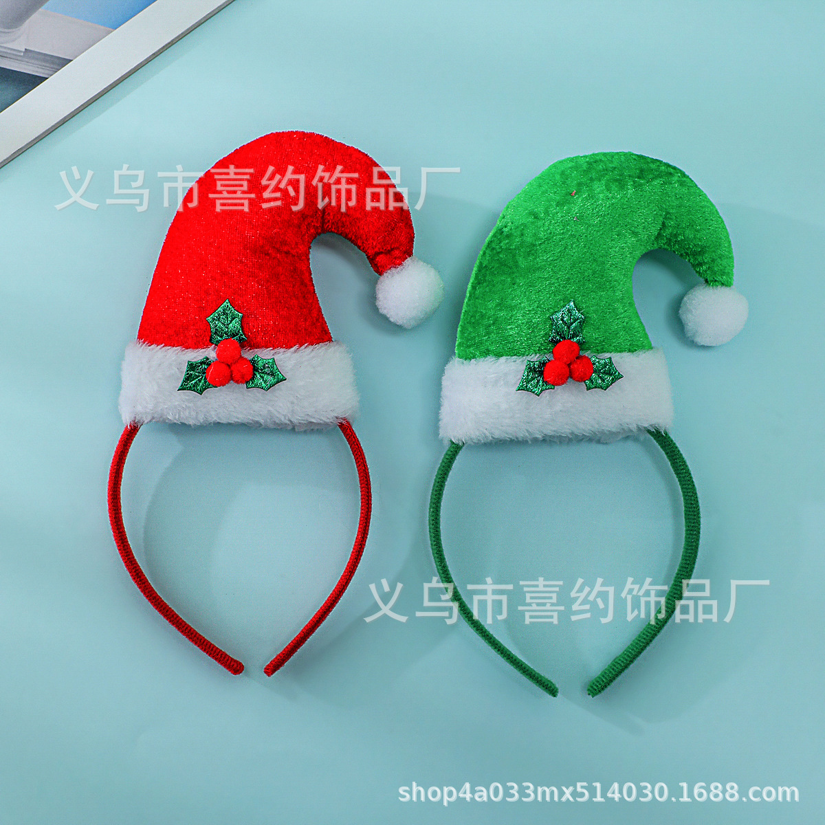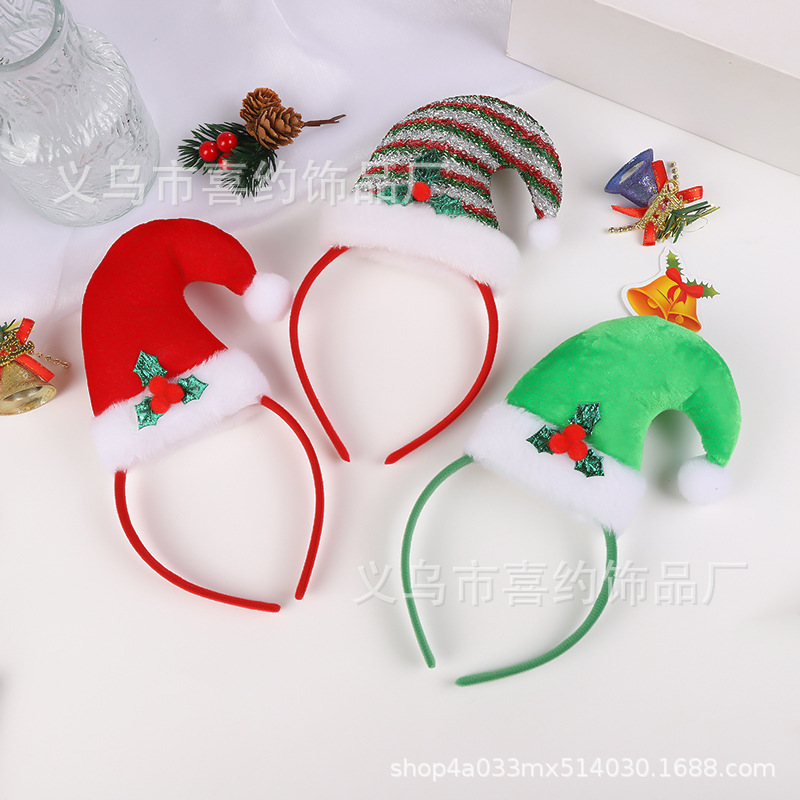 圣诞节红绿色精灵帽发箍网红圣诞气氛时尚小清新可爱发饰厂家直销