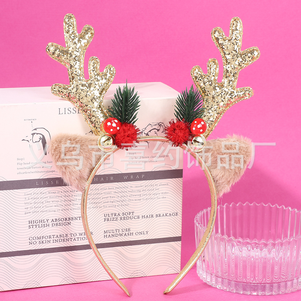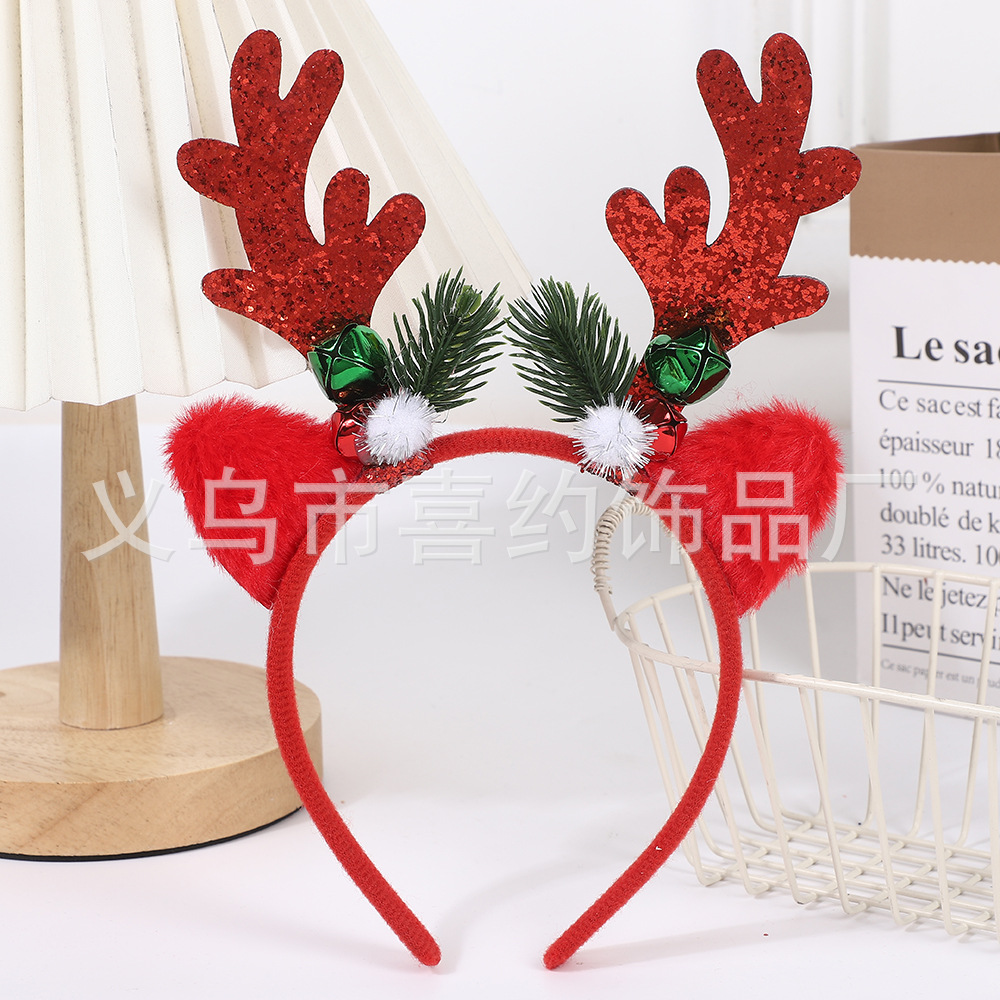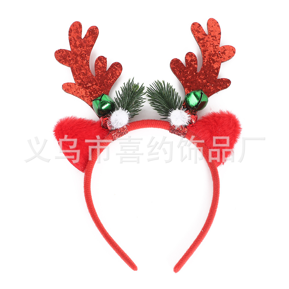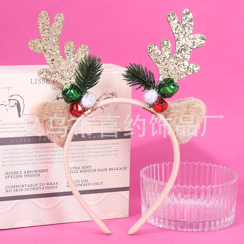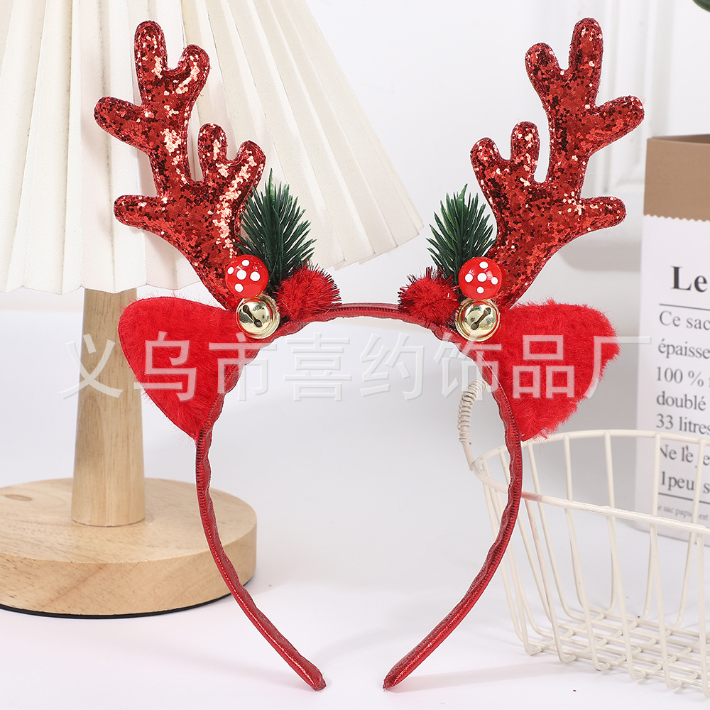 圣诞节亮片鹿角发箍派对聚会装扮头饰可爱铃铛麋鹿头箍发饰品现货