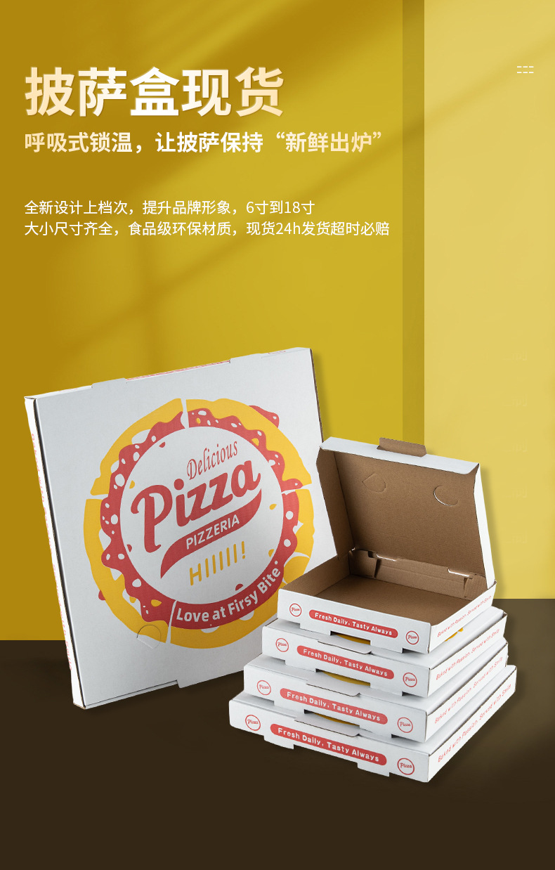 披萨盒现货披萨盒白色16寸披萨盒子打包纸盒外卖包装盒8寸披萨盒