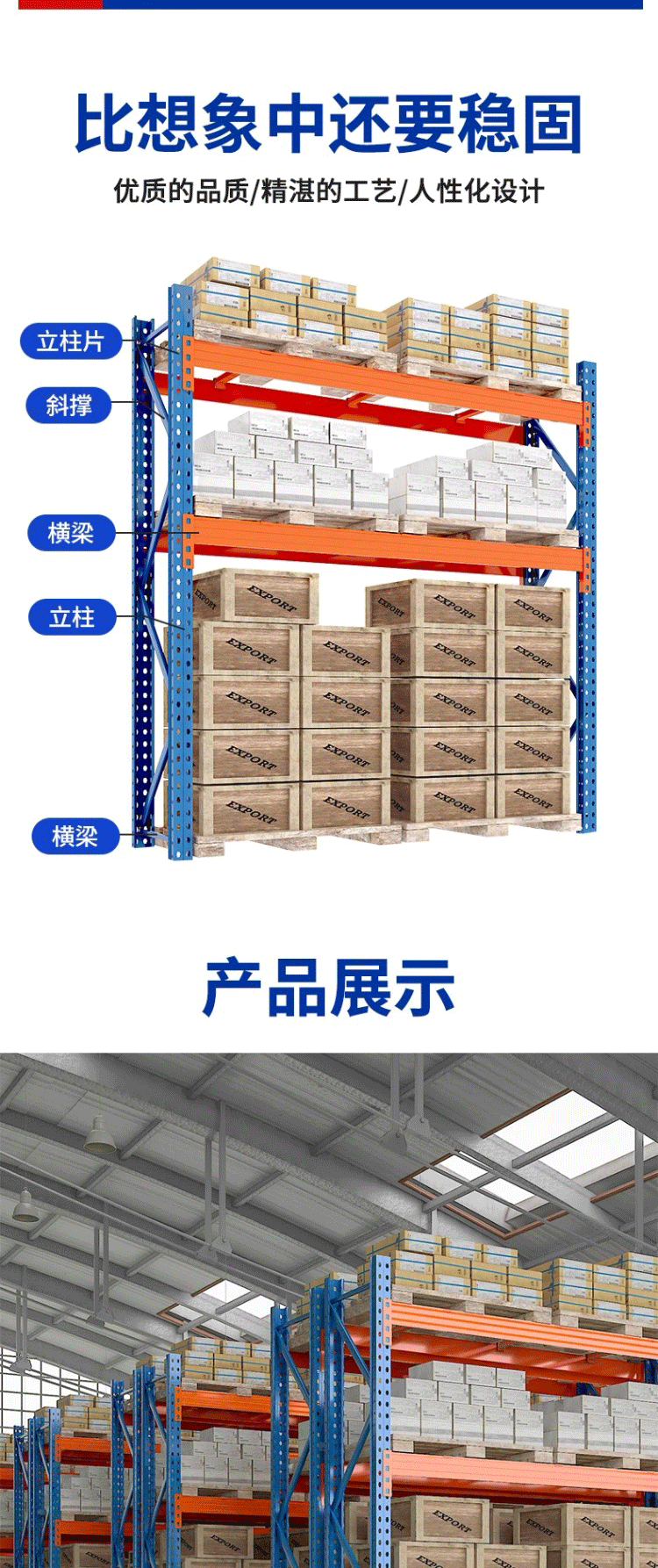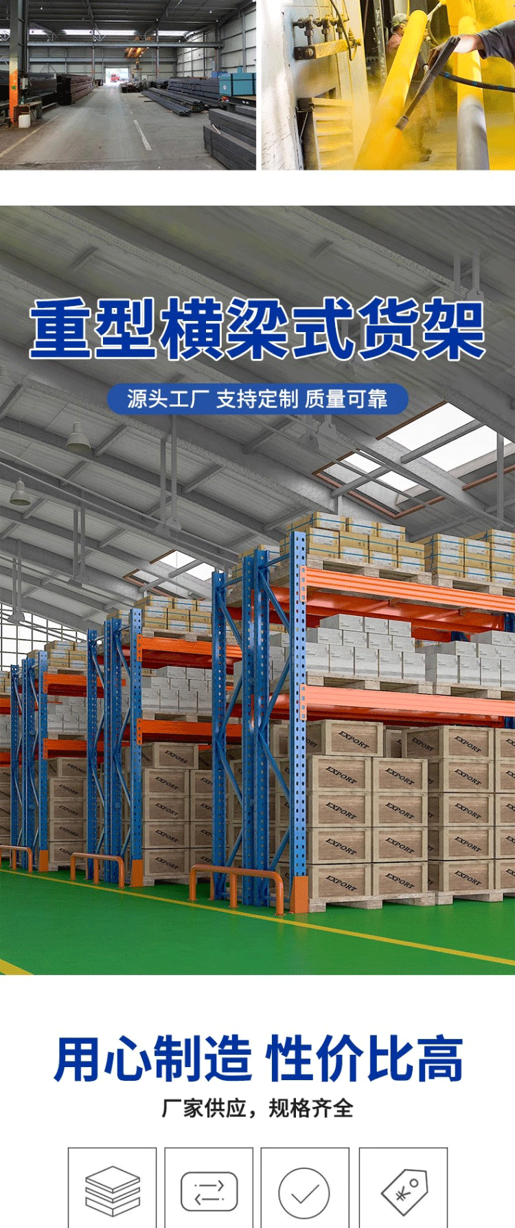 广东重型货架厂家海外直供多层加厚承重横梁式钢结构仓库仓储货架