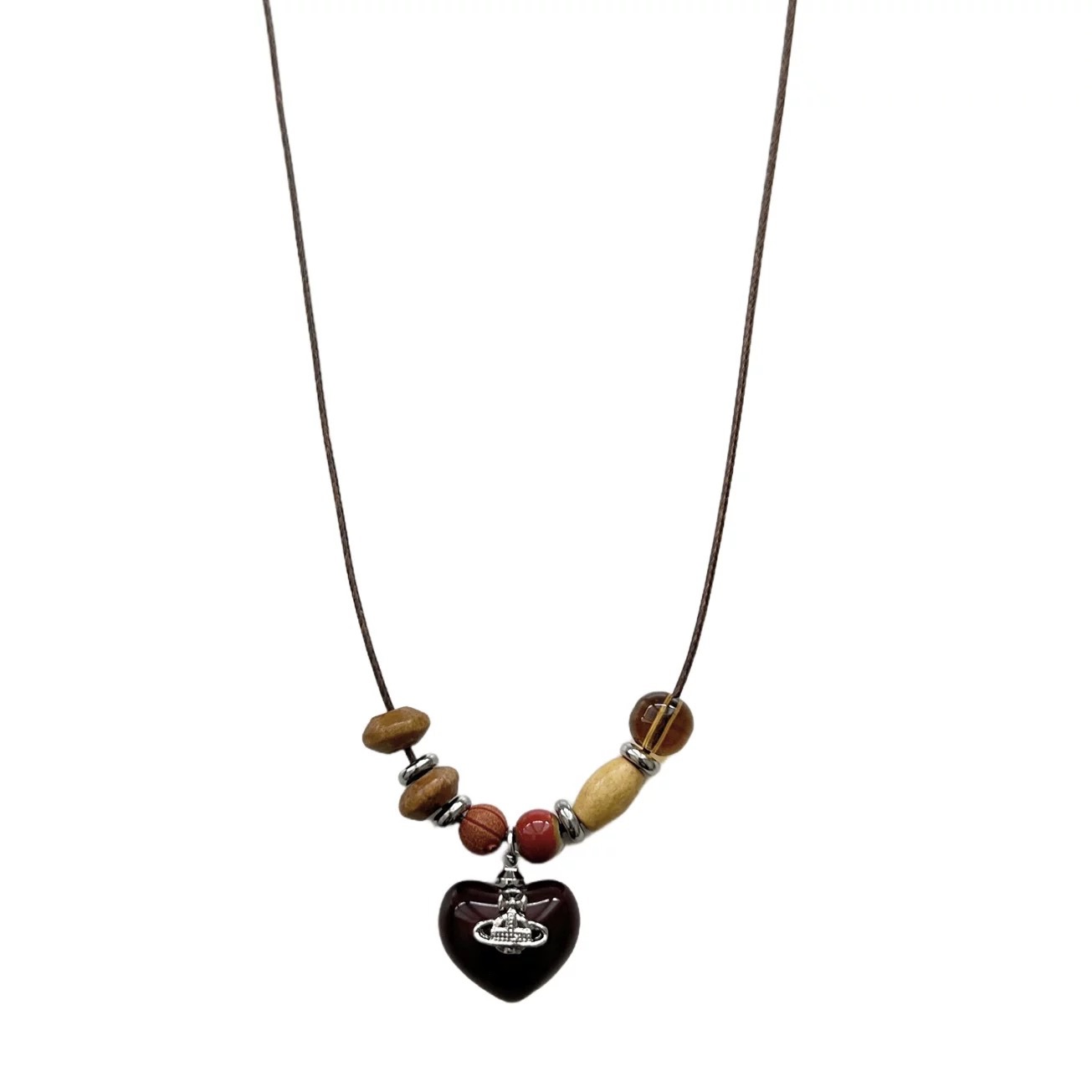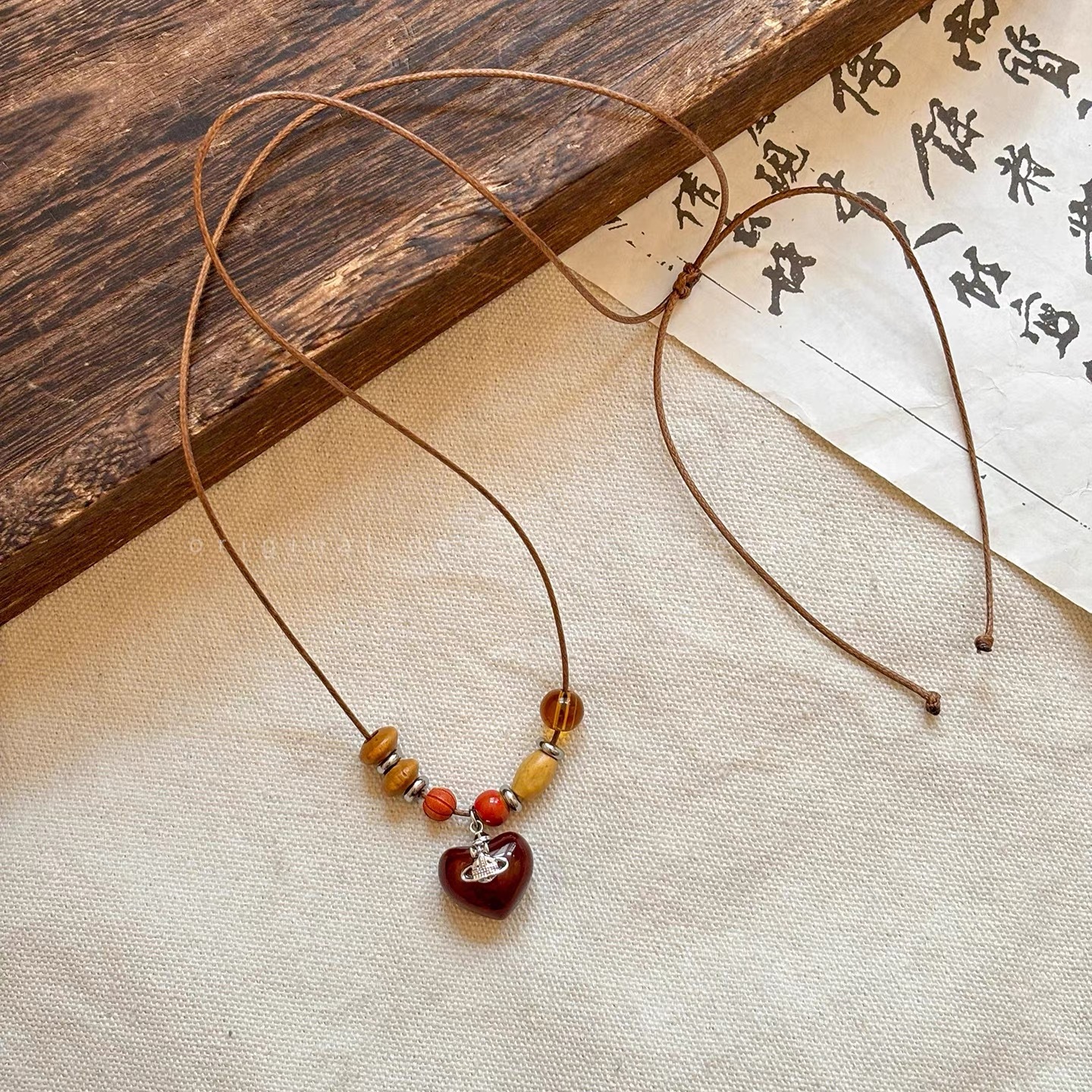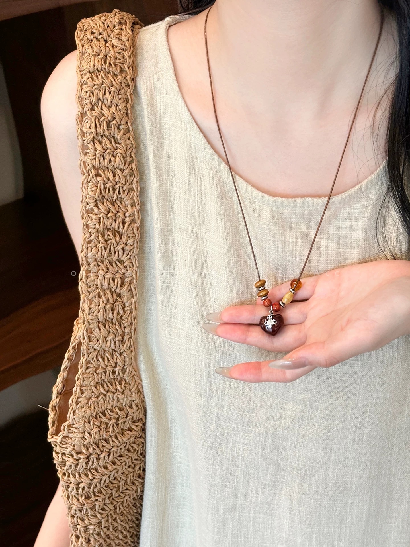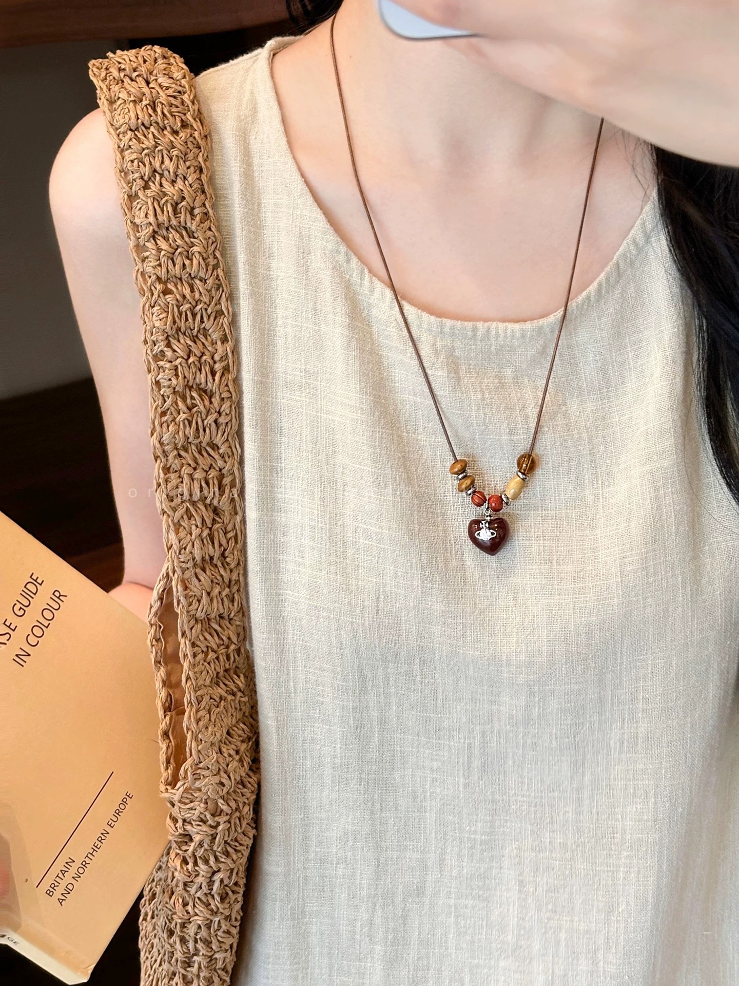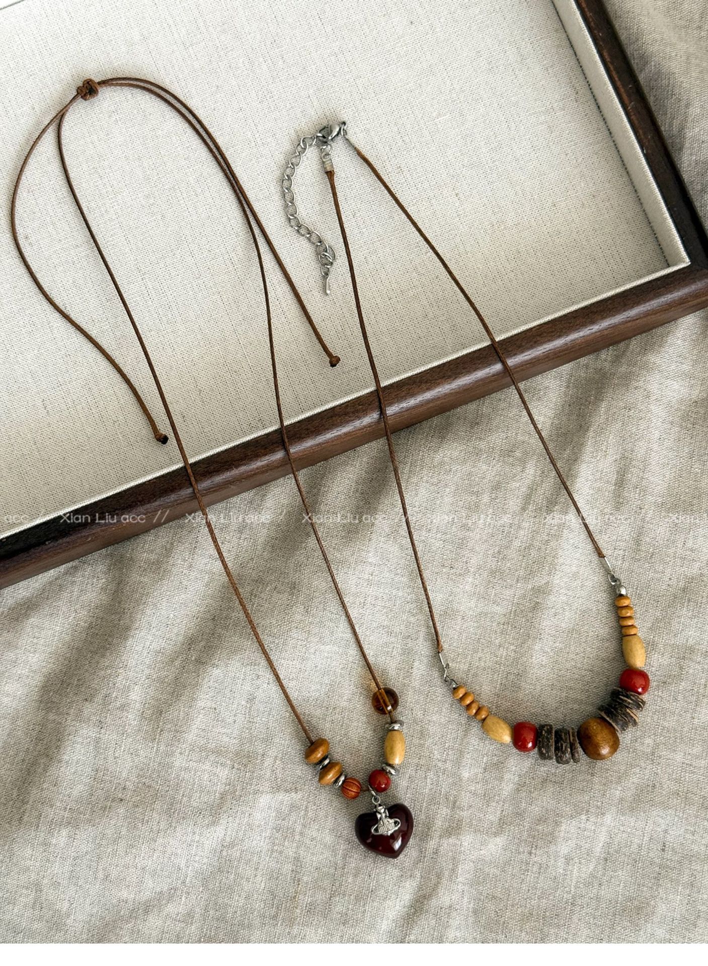 复古木质串珠吊坠项链女小众设计感民族风配饰时尚长款百搭毛衣链