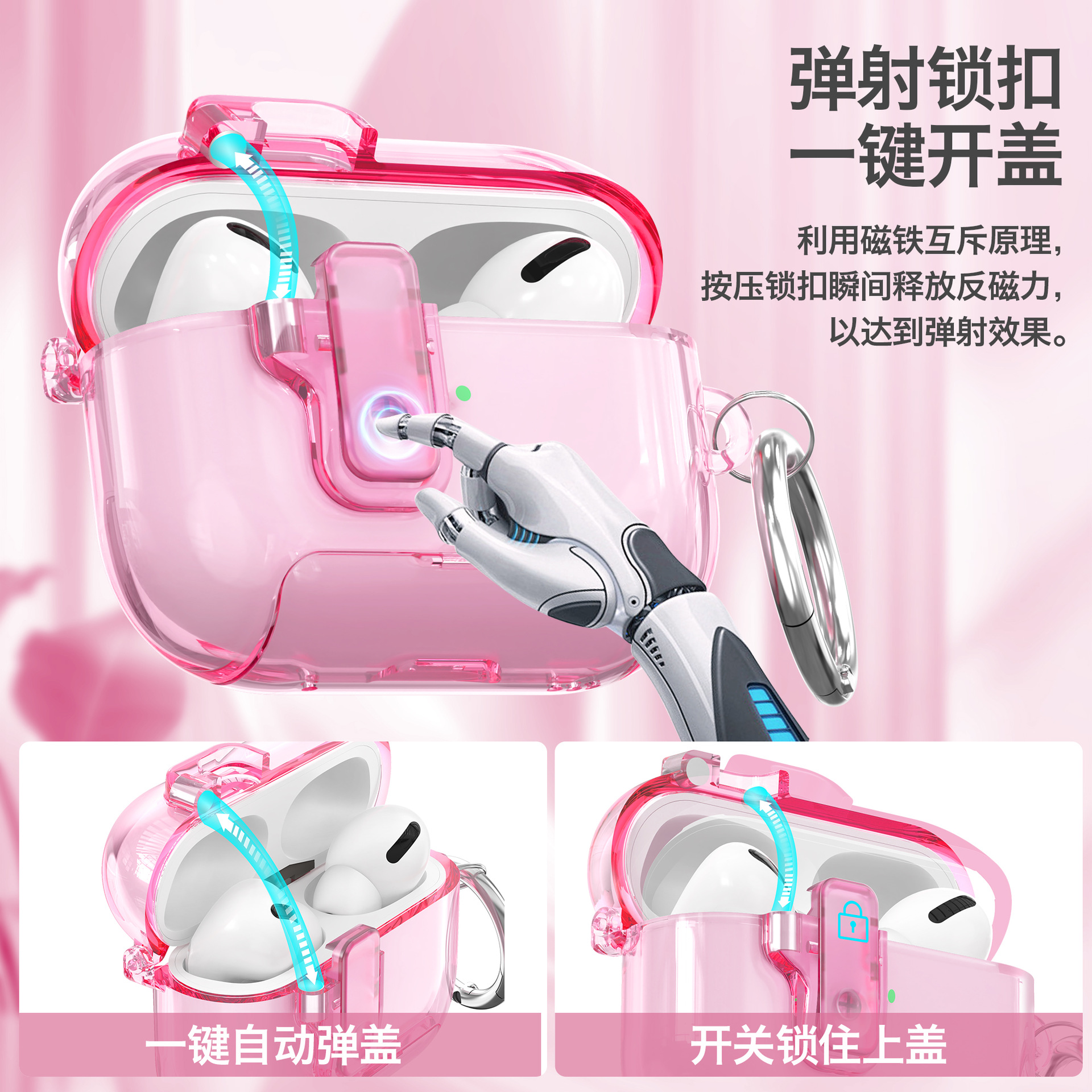 适用airpodspro2保护壳透明弹盖苹果4代 airpodspro3耳机保护套