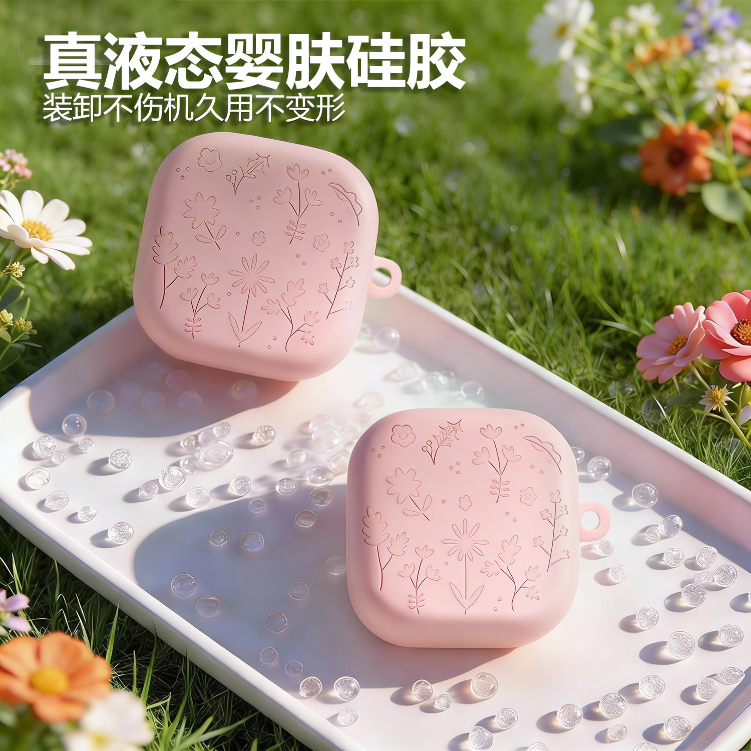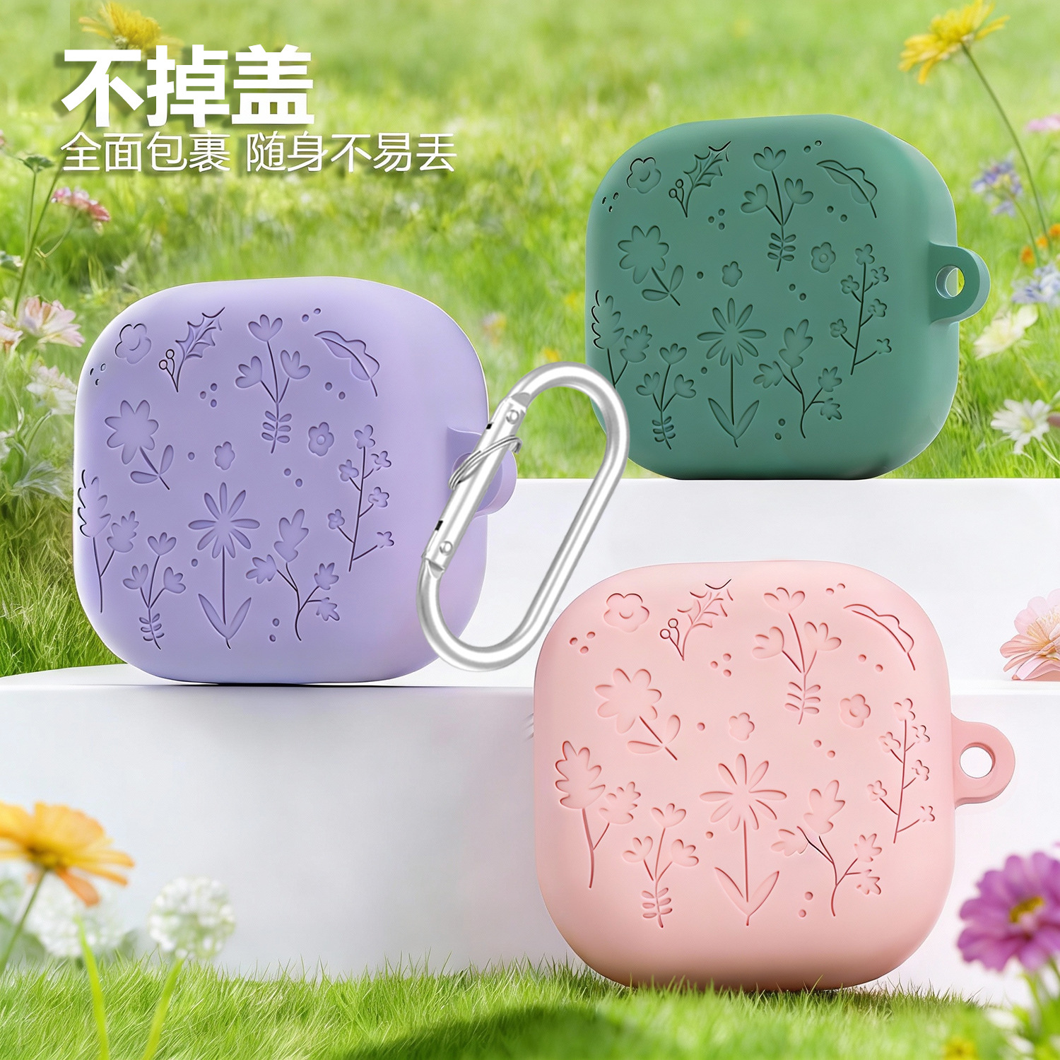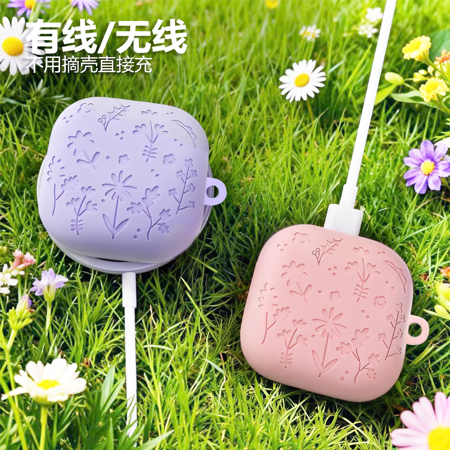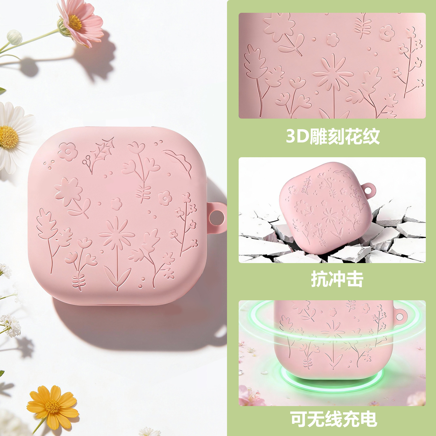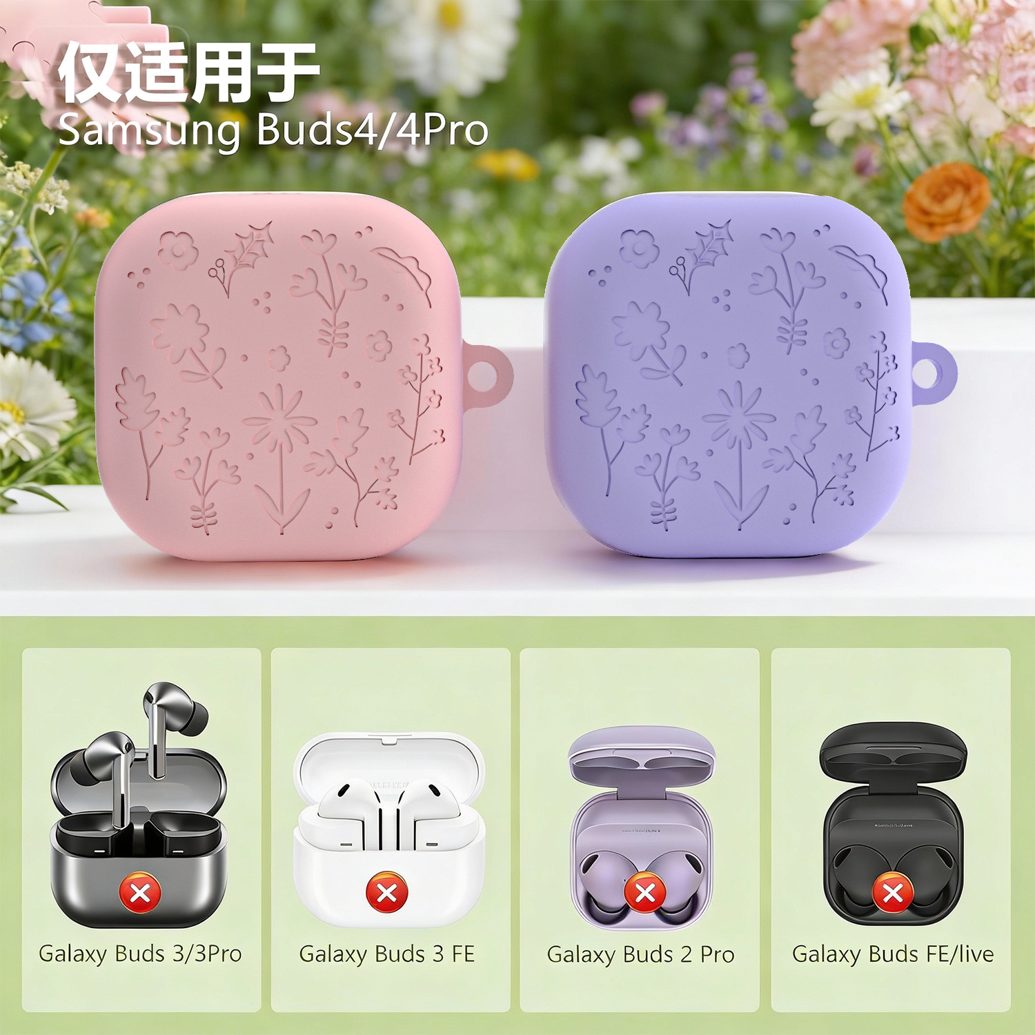 适用三星buds4pro耳机套硅胶花草雕刻蓝牙软壳samsungbuds4保护套
