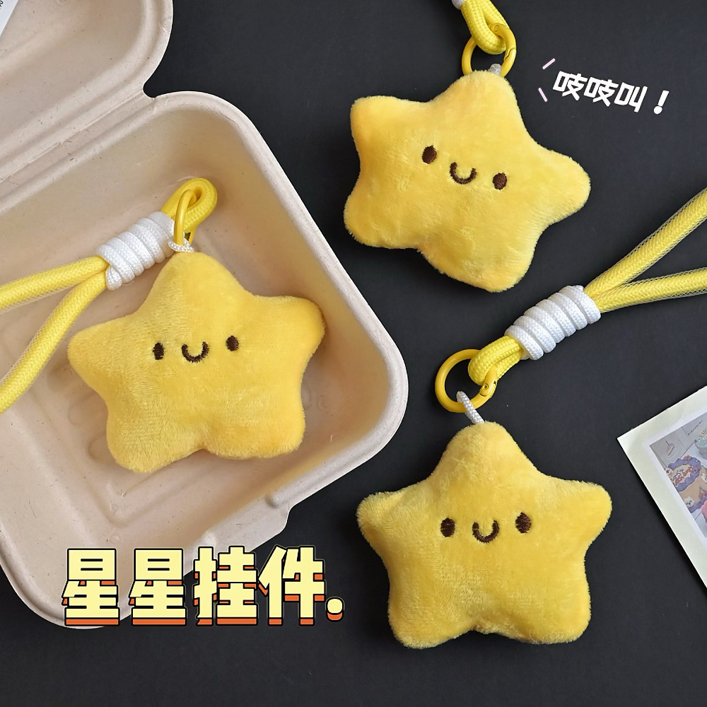 可爱毛绒星星公仔挂件吱吱叫玩偶钥匙扣卡通配饰学生背包挂饰批发