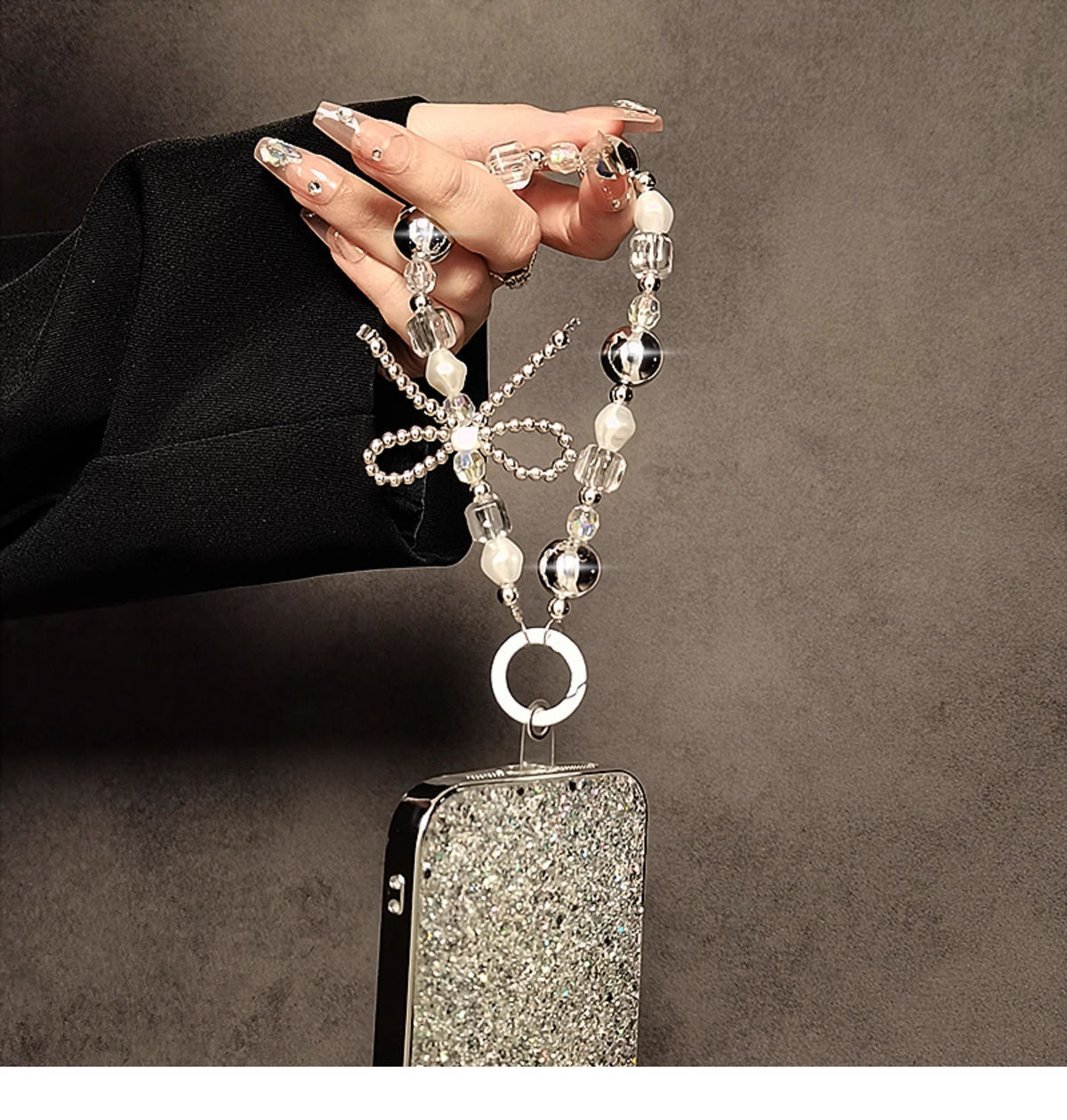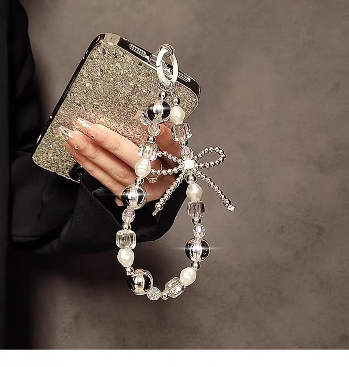 个性创意蝴蝶结串珠手提链条手腕短挂绳带夹片手机壳钥匙包包挂件