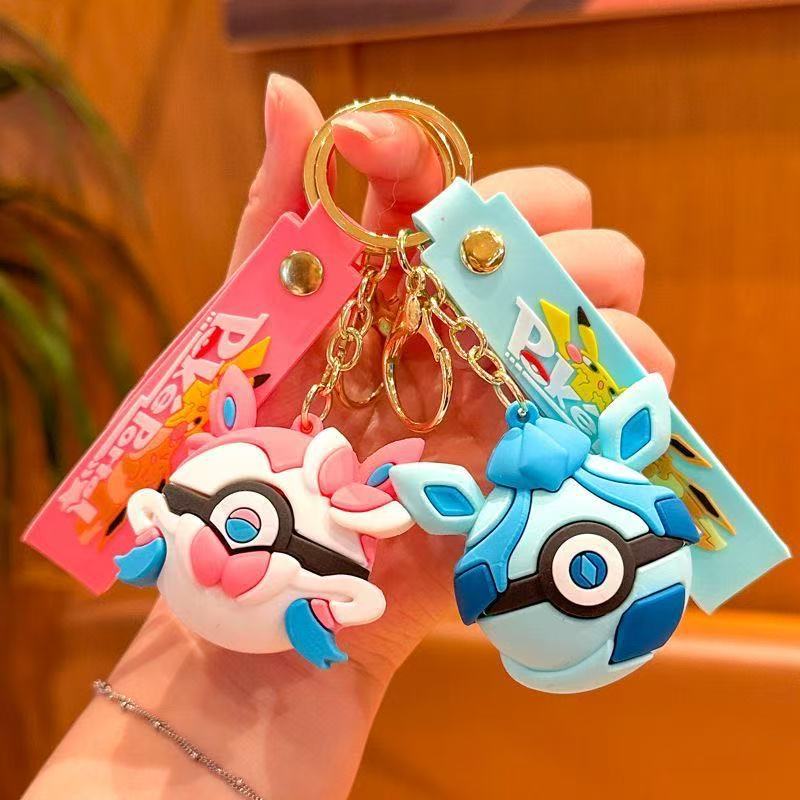 神奇宝贝宝可梦伊布钥匙扣可爱精灵球公仔男女书包挂件饰小礼品