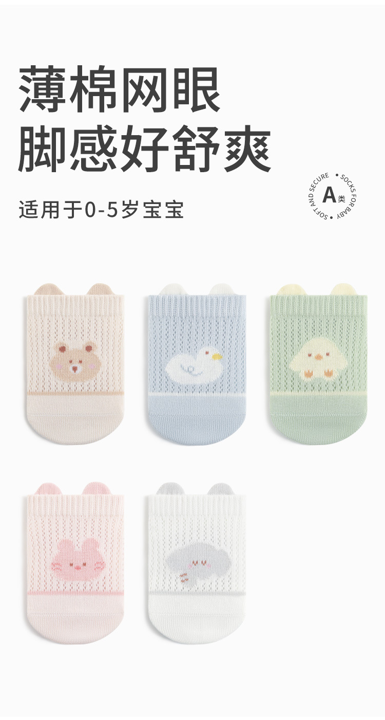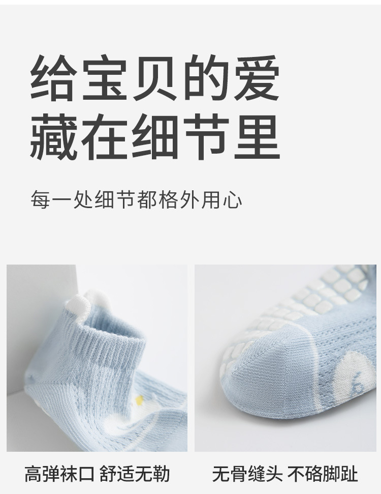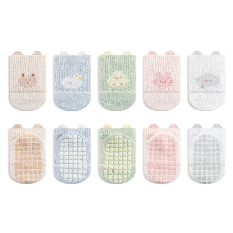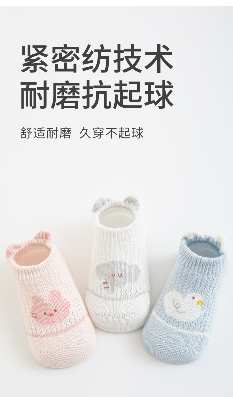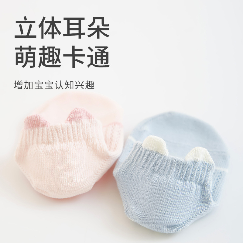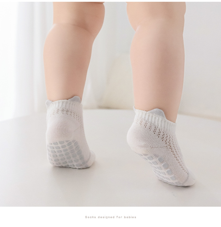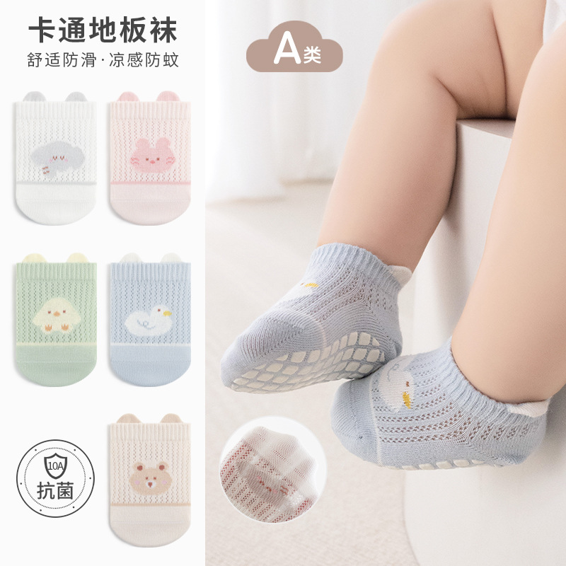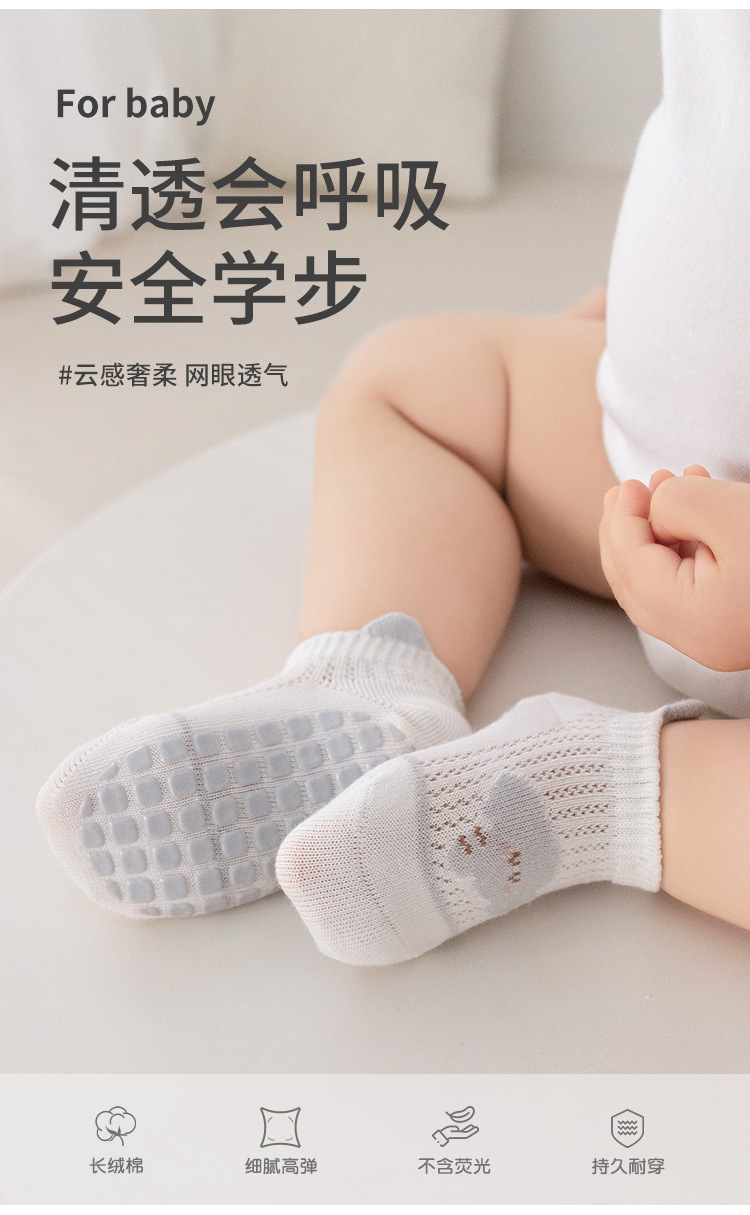 婴儿网眼地板袜夏季薄款卡通船袜宝宝防滑无骨松口室内学步袜短袜