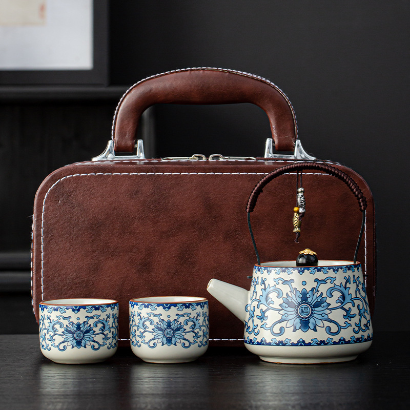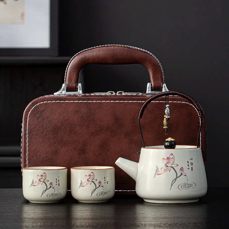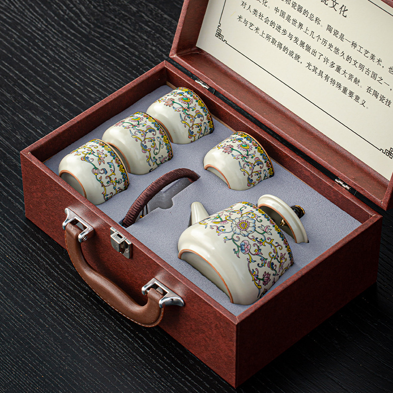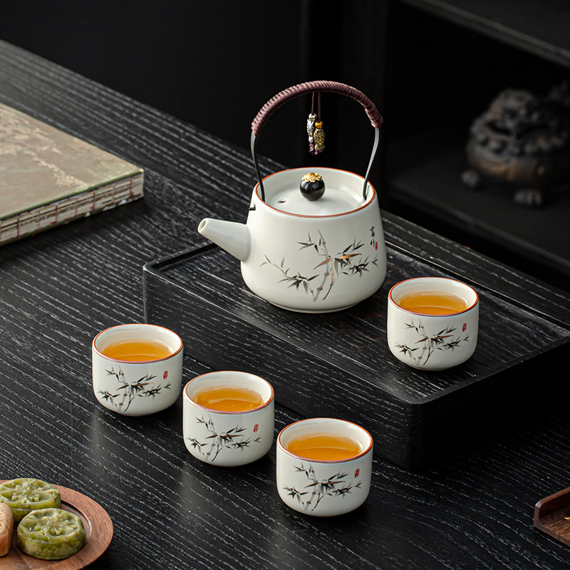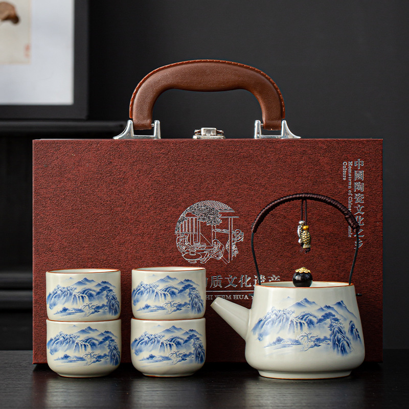 汝窑提梁壶功夫茶具小套装便携防烫泡茶壶茶杯商务活动年会伴手礼