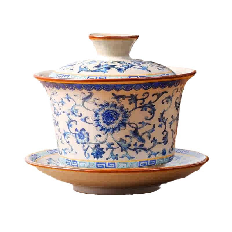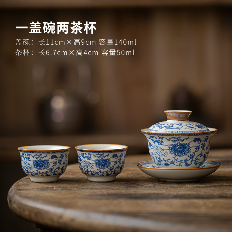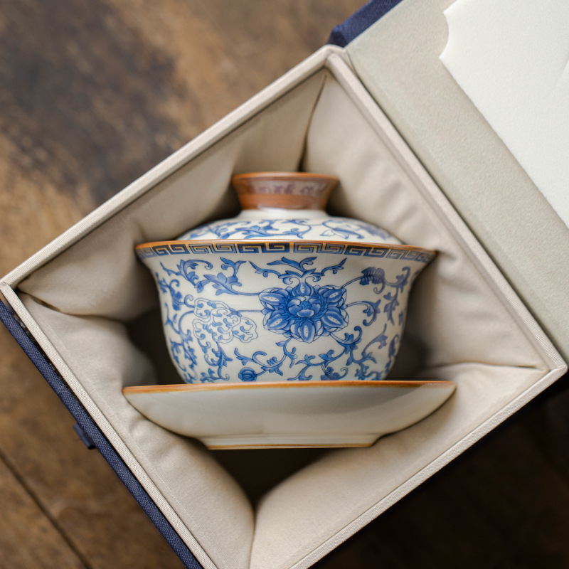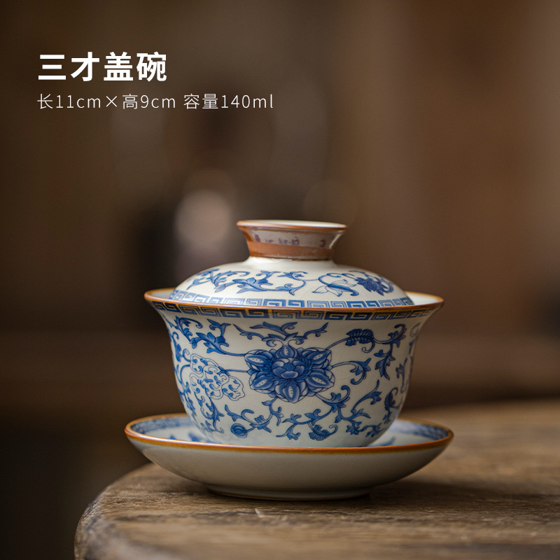 三才盖碗青花汝窑盖碗功夫茶具单个高档家用茶具茶碗防烫泡茶茶壶