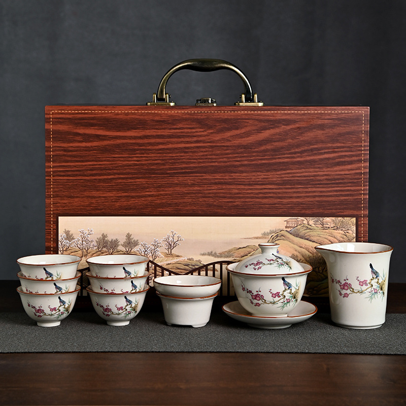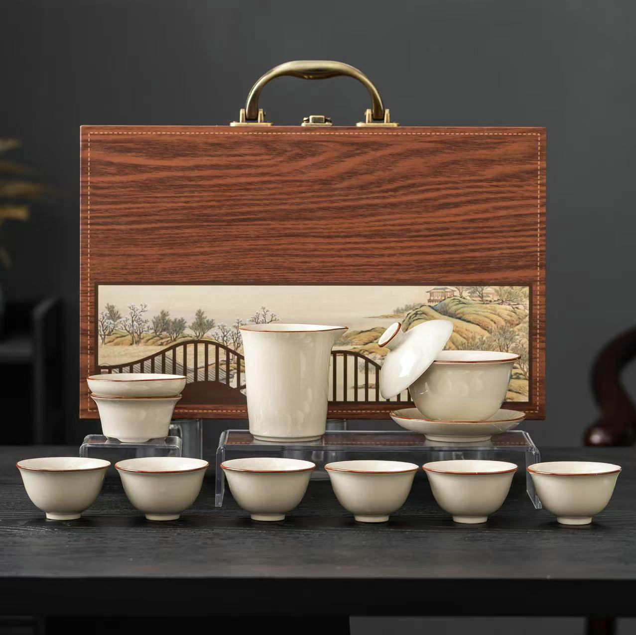 复古十件套草木灰功夫茶具套装高档陶瓷整套套组礼盒年会商务礼品