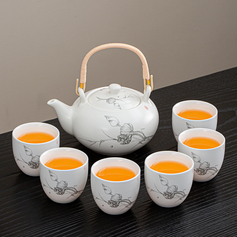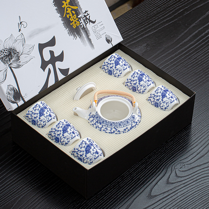 陶瓷提梁壶茶壶套装家用中式凉水壶公司商务伴手礼礼品套装泡茶壶