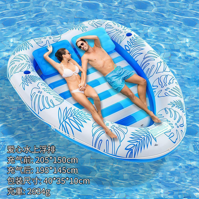 跨境外贸便携式双人充气浮排户外水上泳池海边阳光浴晒黑漂浮浮床