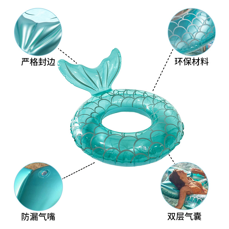 跨境热卖充气式大浮力美人鱼泳圈加厚PVC救生圈水上运动游泳圈