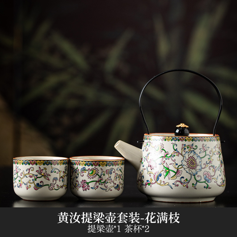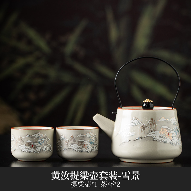 提梁壶汝窑茶杯陶瓷干泡茶盘单人小套装家用功夫茶具一壶两杯logo