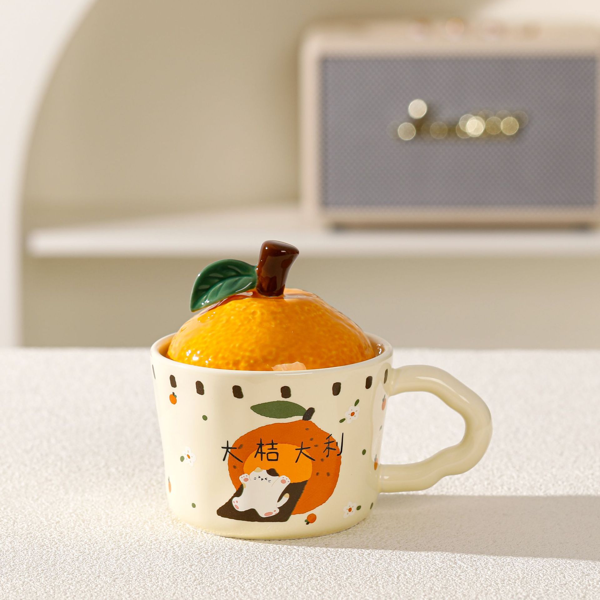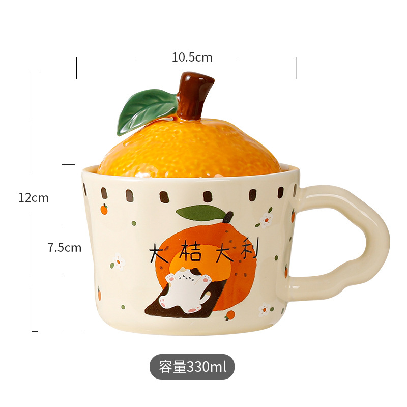 卡通猫咪陶瓷杯大吉大利水杯带盖家用办公室早餐杯伴手礼情侣杯子