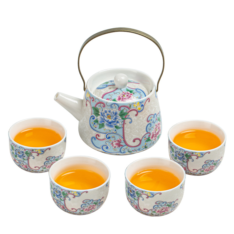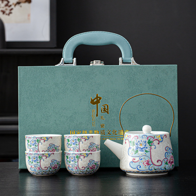 珐琅彩手工掐丝银提梁壶套装一壶四杯泡茶壶商务礼品批发印logo