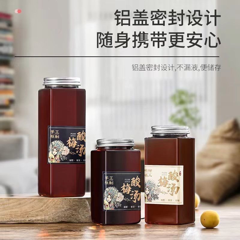 酸梅汤杯子一次性塑料饮品杯pet热豆浆玉米汁瓶子空瓶带盖食品级