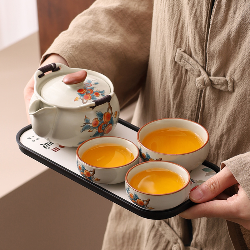 旅行茶具手抓壶礼品套装带茶盘便携式快客杯茶具小套装定制logo