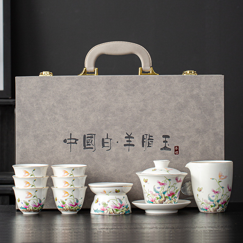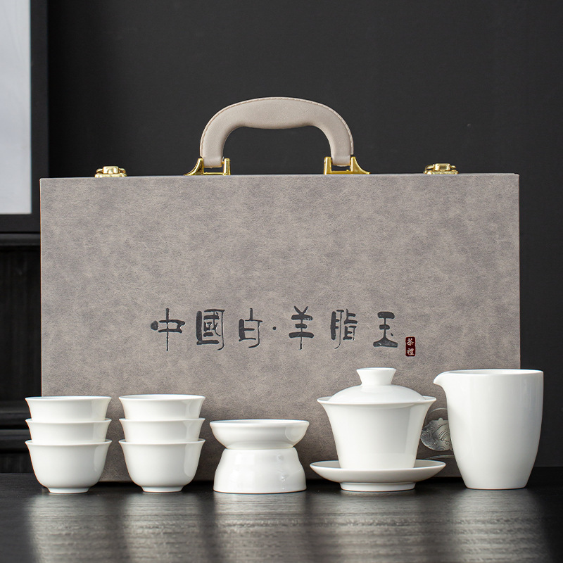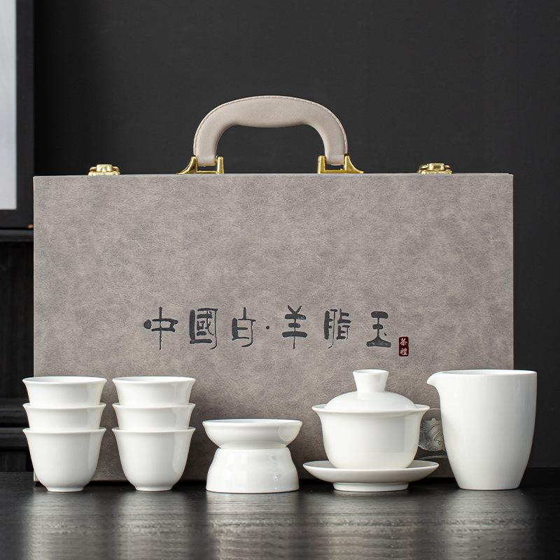 青花汝窑防烫轻奢茶具套装商用礼品套盒高档泡茶整套带茶盘印LOGO